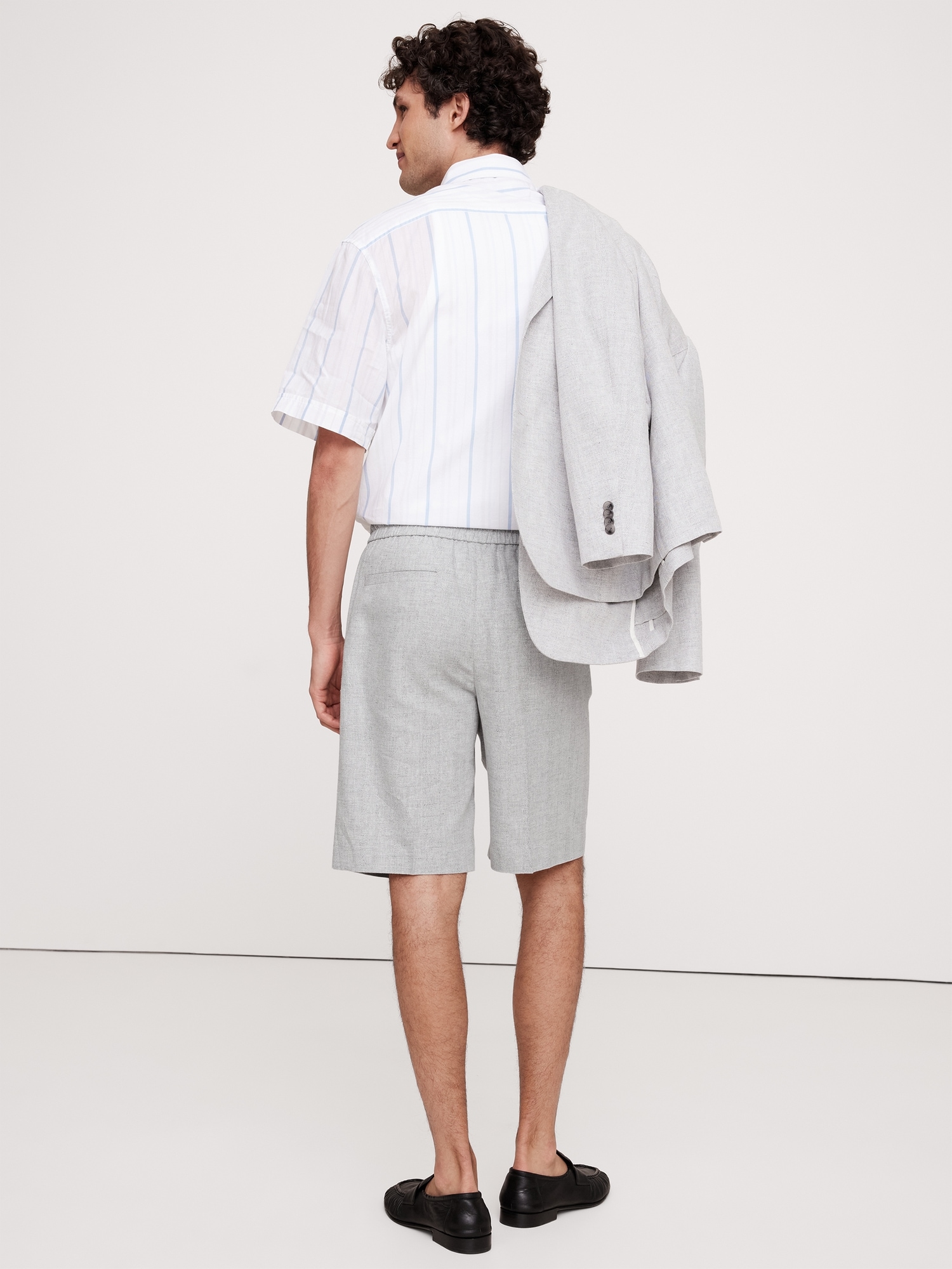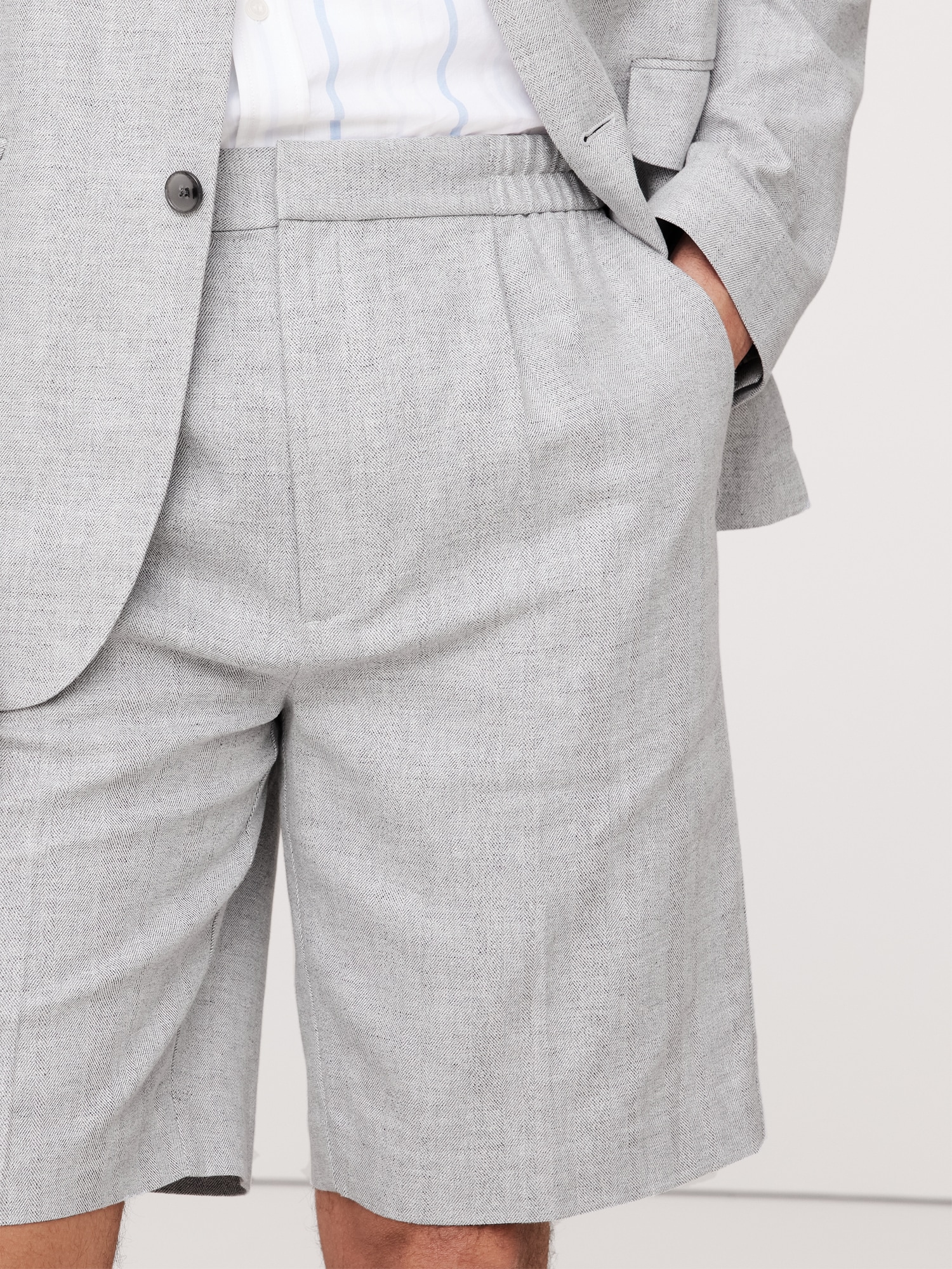 9.5″ Herringbone Linen-Cotton Pleated Pull-On Short