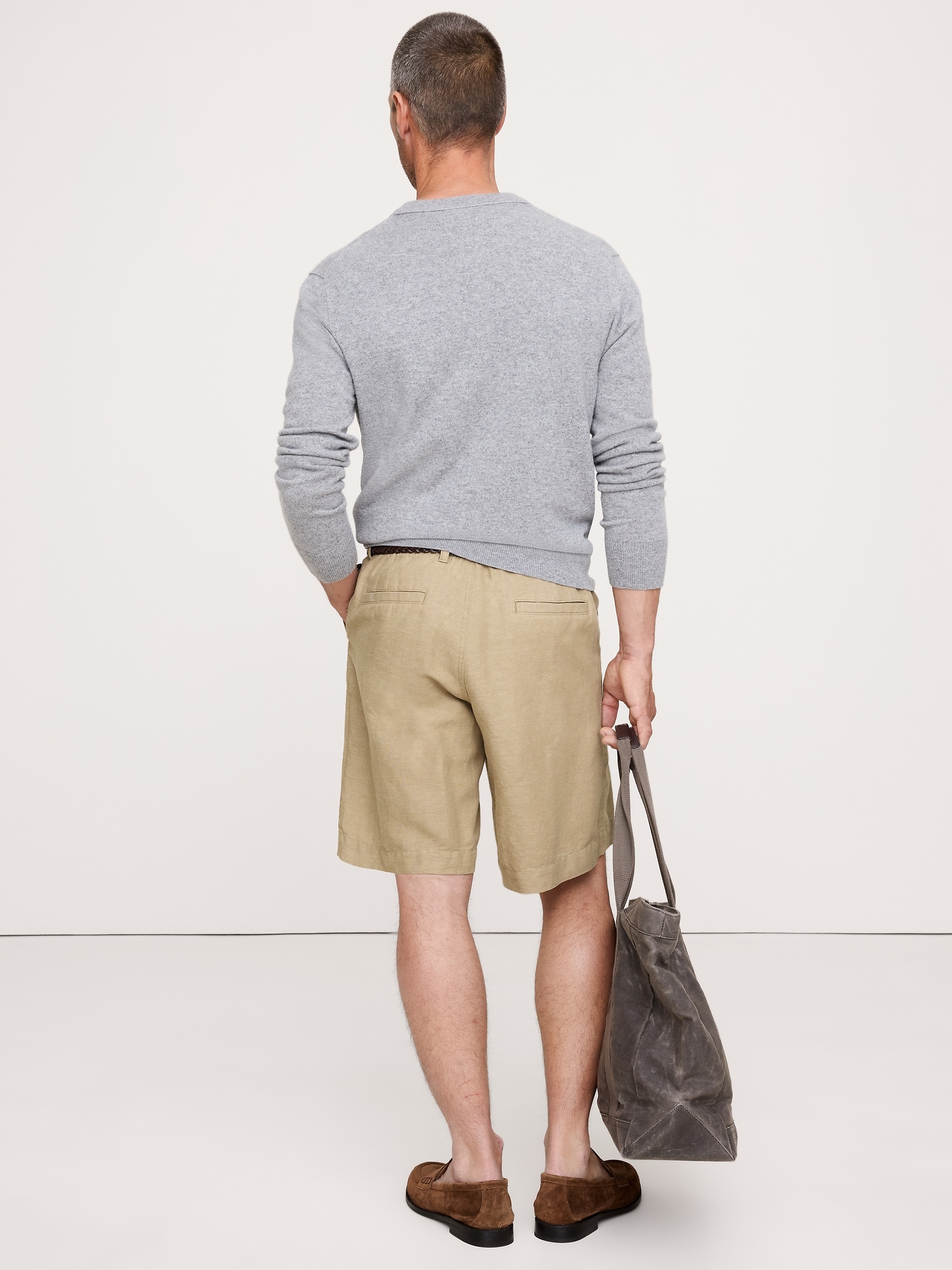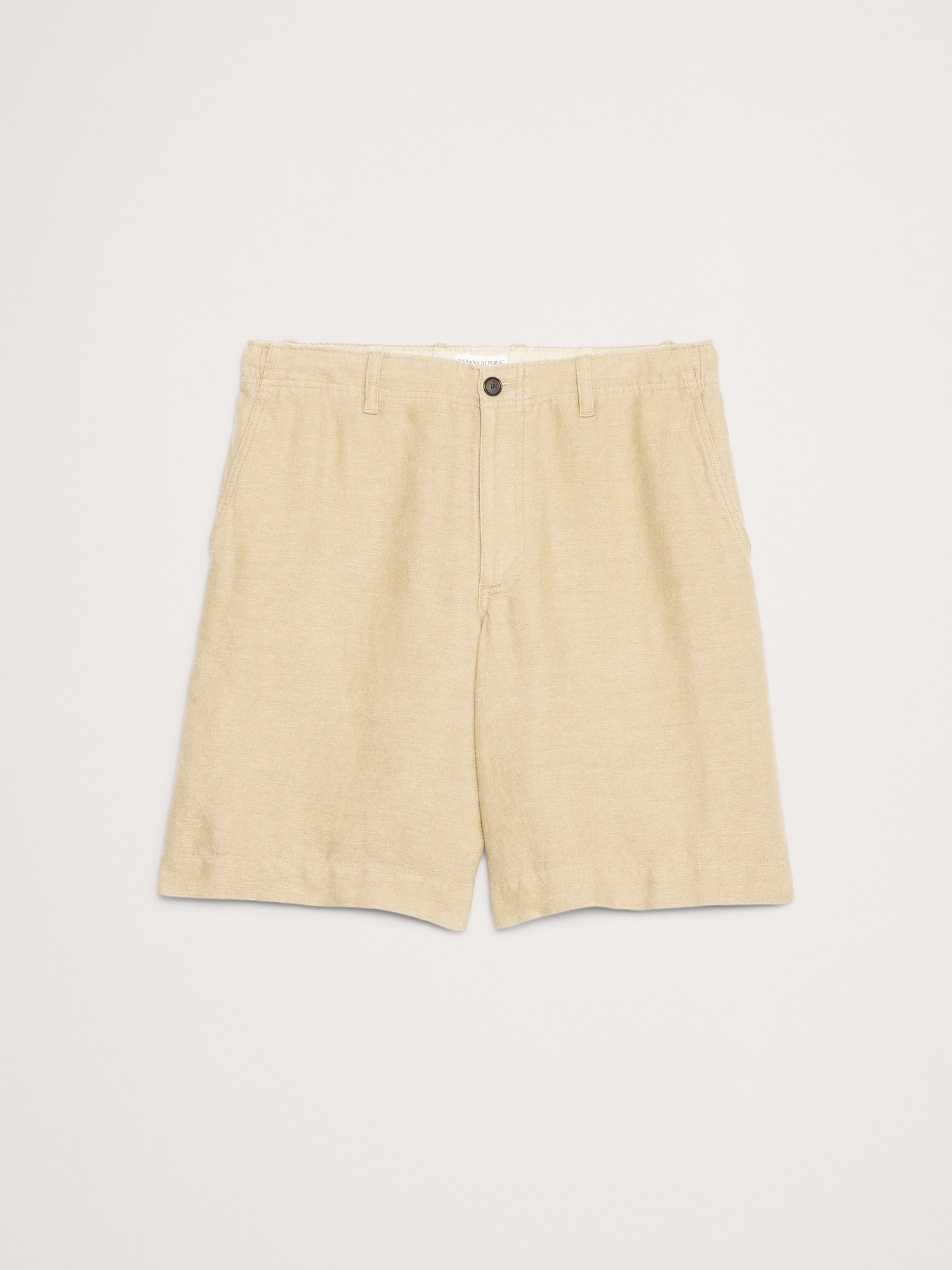Cut from soft linen and cotton, these tailored shorts have an elastic waistband at back and a fully functional fly.