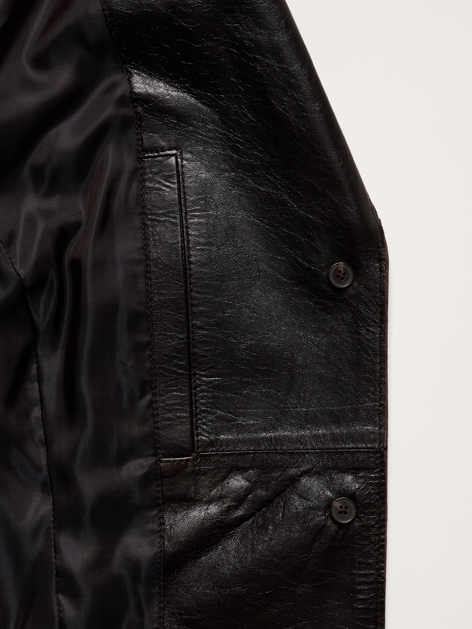 We looked to the archives to style this luxurious leather blazer. The style itself is classic and the silhouette is minimalist because the lambskin leather here is so special.