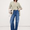 A little linen moment. This boxy top is cut from certified European flax linen with premium details: a covered button placket, chest pockets, and a high-low hem. Pair with the matching mini skirt or style with high-rise jeans.