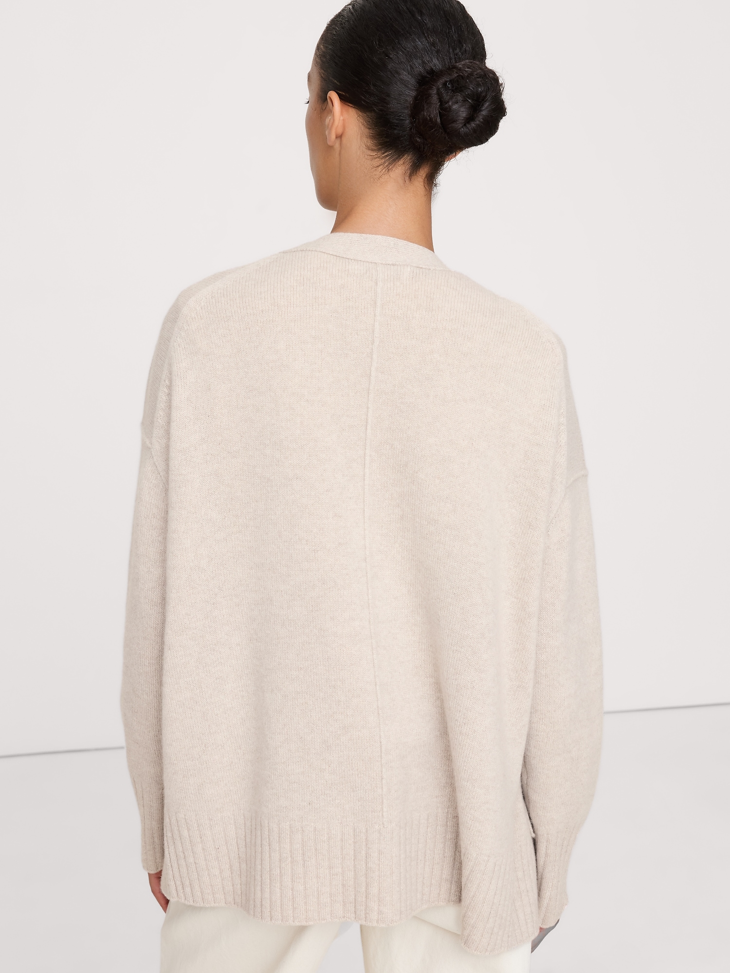 The vibe here is relaxed, yet put-together. We cut this boyfriend cardigan with extra room, adding pockets and exposed seam details for a fresh twist. To make it luxe, we selected our signature midweight cashmere yarn so it’s ideal in cooler seasons.