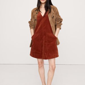 Our version of the season’s pinafore dresses. This sleeveless shift dress is done up in a soft, fine-wale corduroy with just enough stretch for comfort.