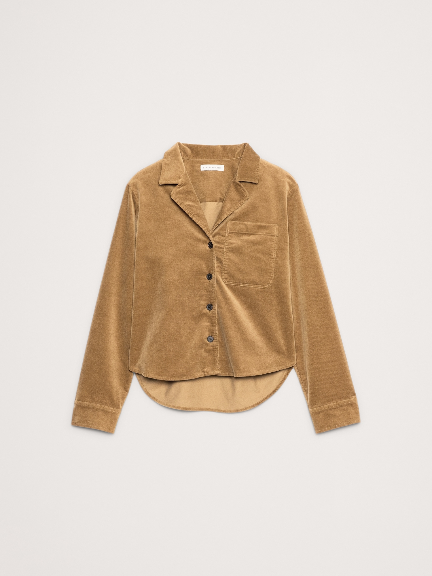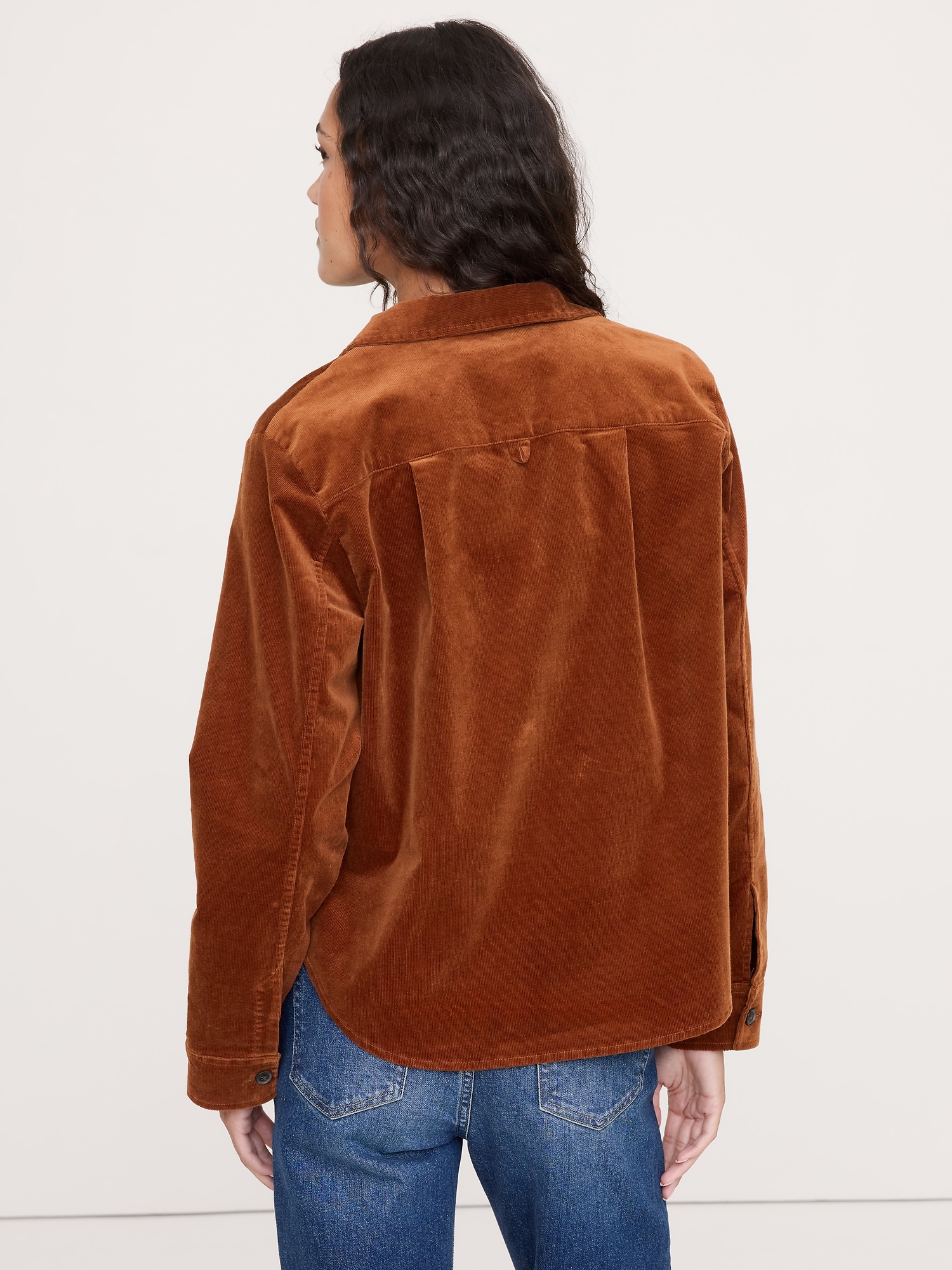 Nothing says cold weather quite like corduroy. Here, we put it to use in a shirt jacket with slightly shrunken proportions so it’s easy to layer all year.