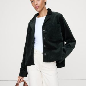 Nothing says cold weather quite like corduroy. Here, we put it to use in a shirt jacket with slightly shrunken proportions so it’s easy to layer all year.