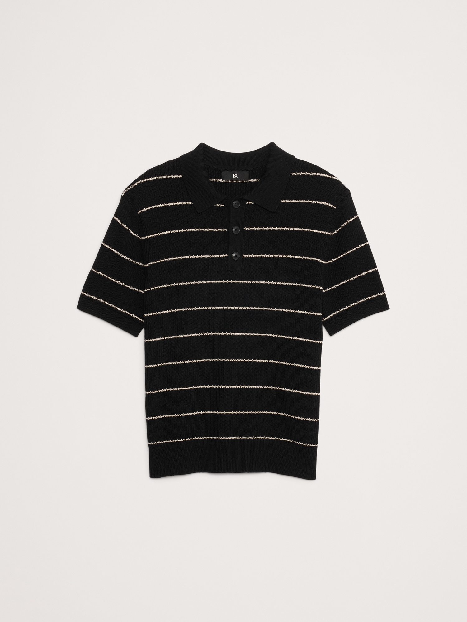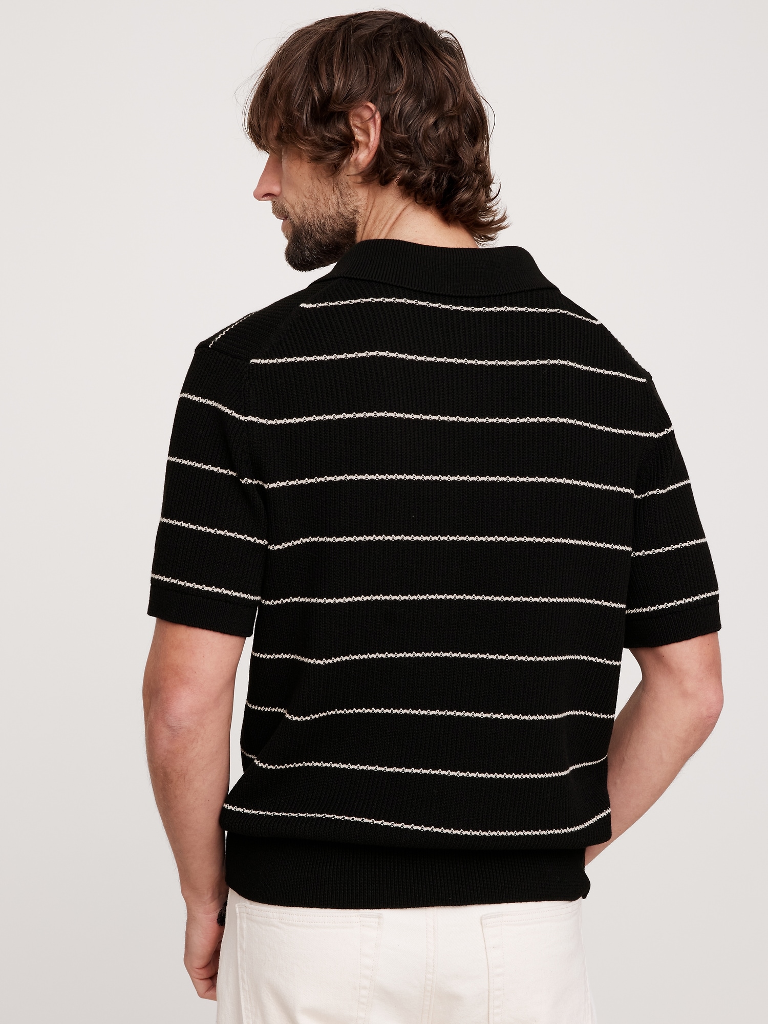 This soft sweater polo is crafted from a cotton blend yarn using a variety of stitches to add a retro-inspired texture.