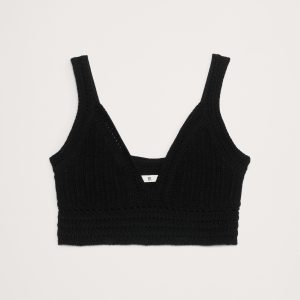 Our take on the season’s bralette styles, this top uses a mix of open, mesh-like stitches to mimic the look and feel of true crochet—in soft cotton.