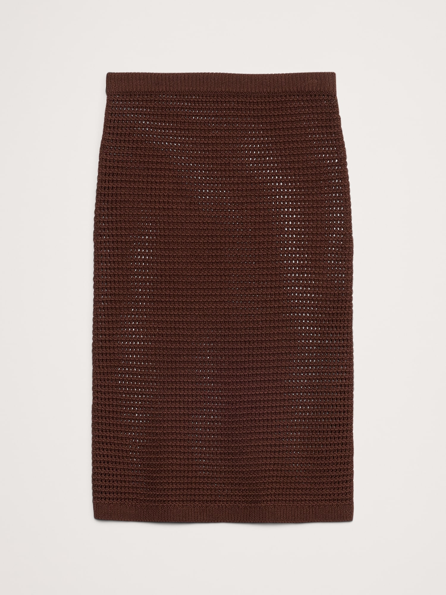 Our take on the season’s sheer trend, this fitted skirt uses an open mesh-like stitch to mimic the look and feel of true crochet—in 100% cotton. Make it a set with the coordinating tank.