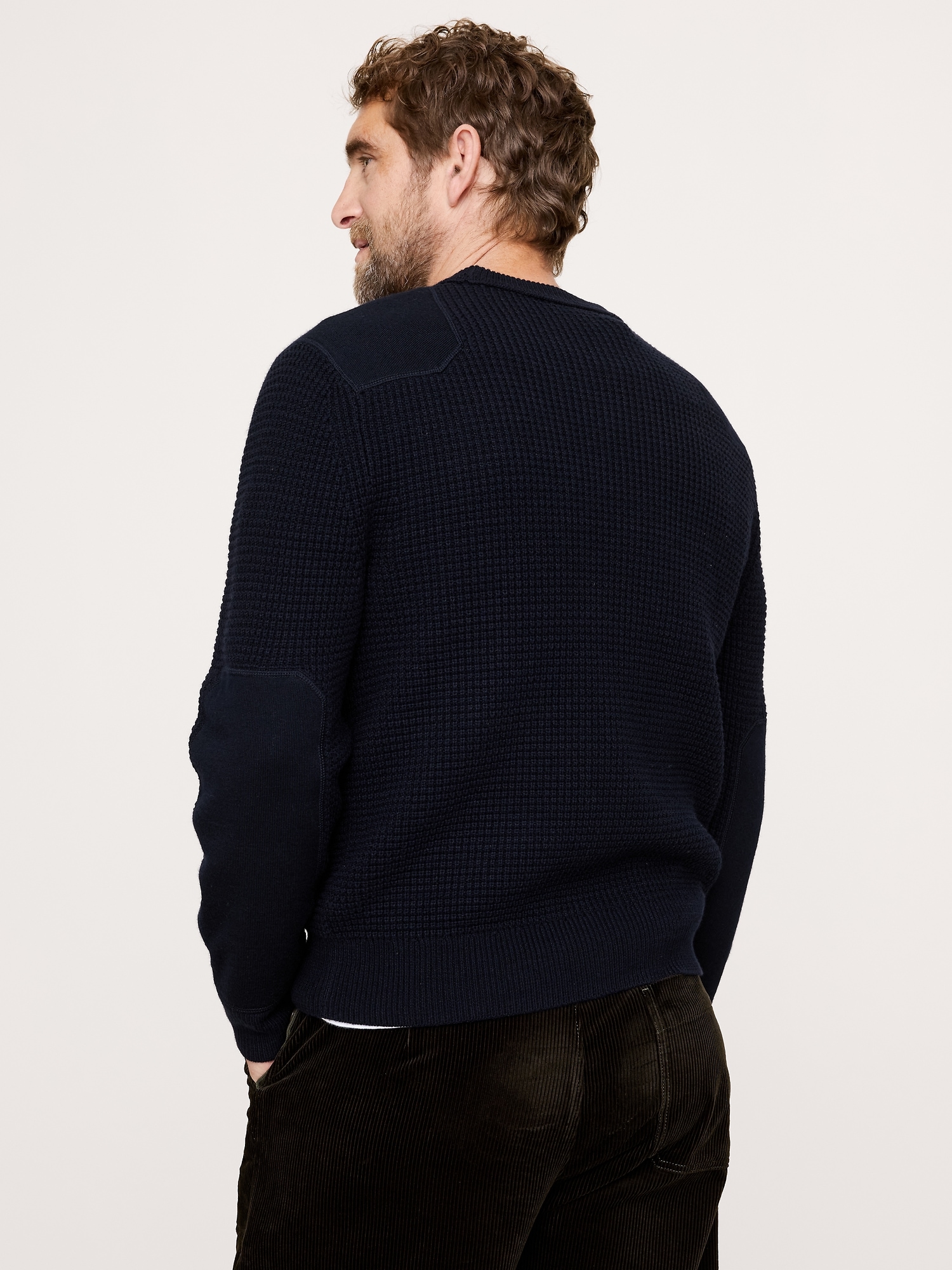 Cotton-Merino Waffle Patch Sweater