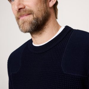 A utilitarian twist on the classic waffle-knit sweater, this one is knitted in soft cotton and warm Merino wool with patch details at the shoulders and arms.