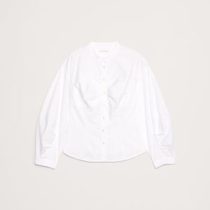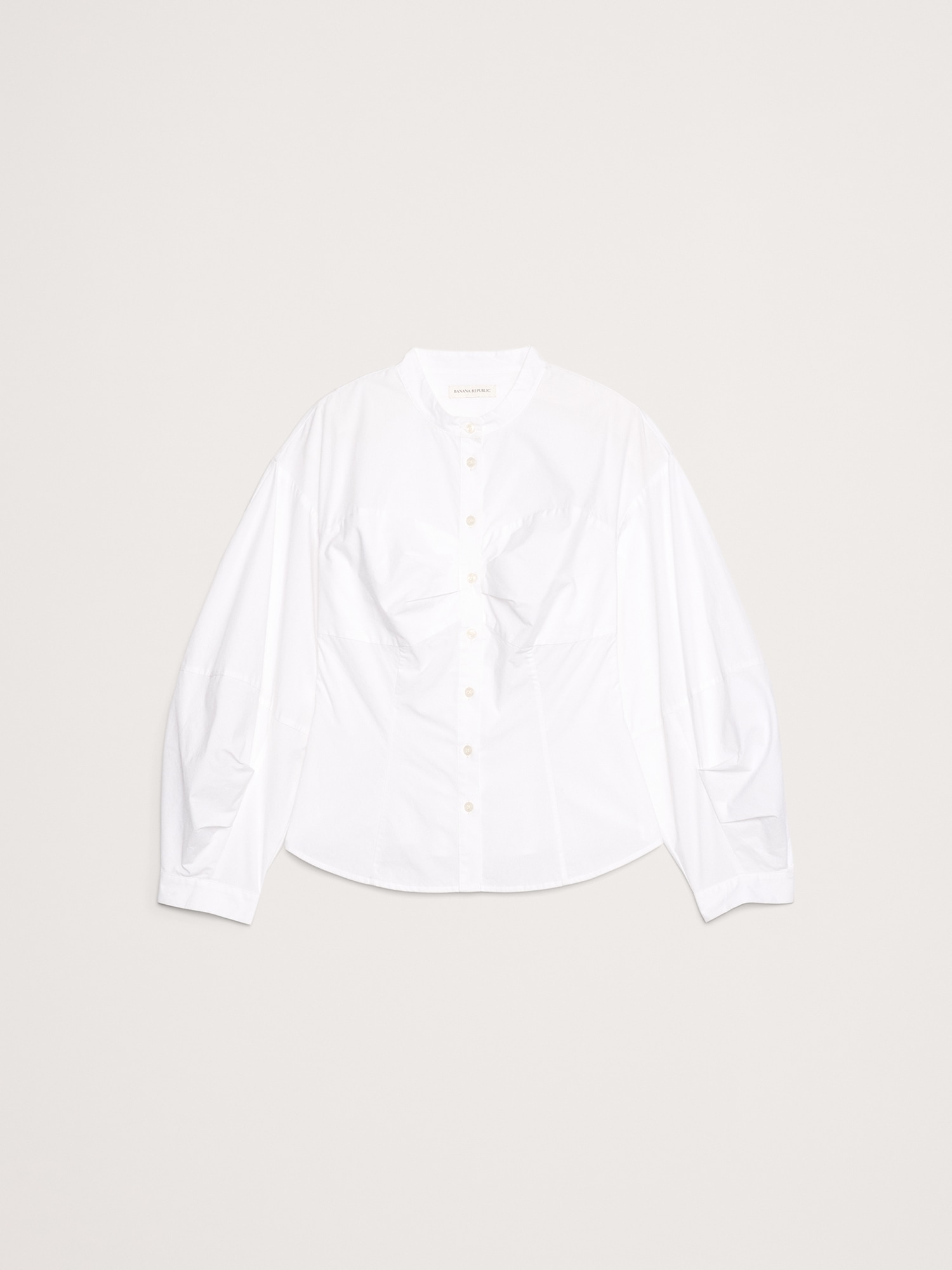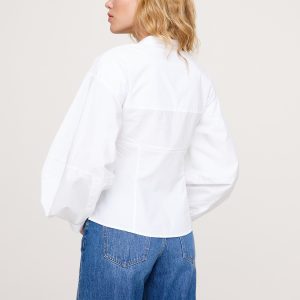 Deconstructed, reconstructed. This balloon-sleeve shirt nods at the season’s corset trend with a sweetheart bodice and corset-inspired panels at the waist—in our 100% cotton poplin.