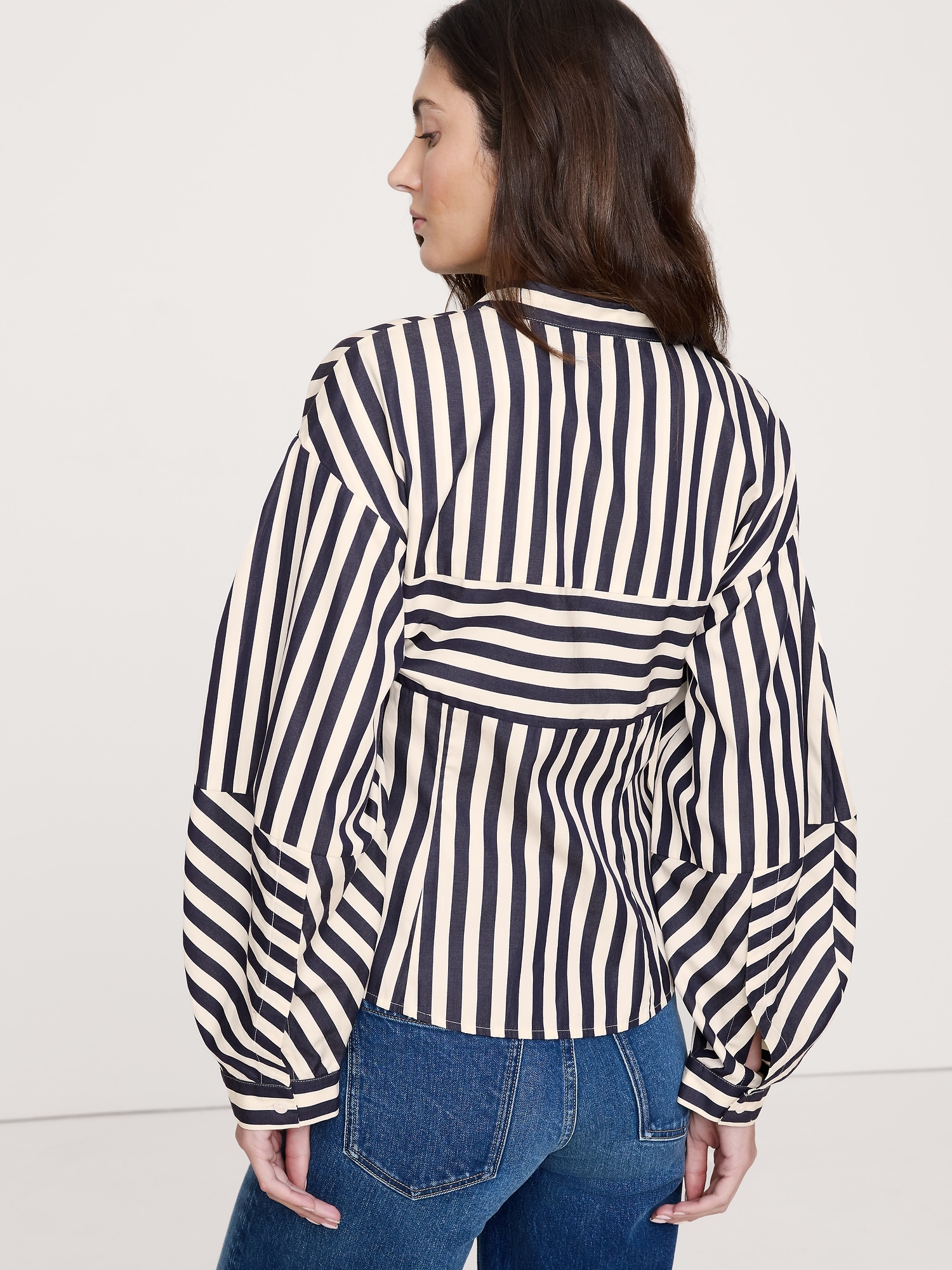 Cotton Poplin Balloon-Sleeve Shirt