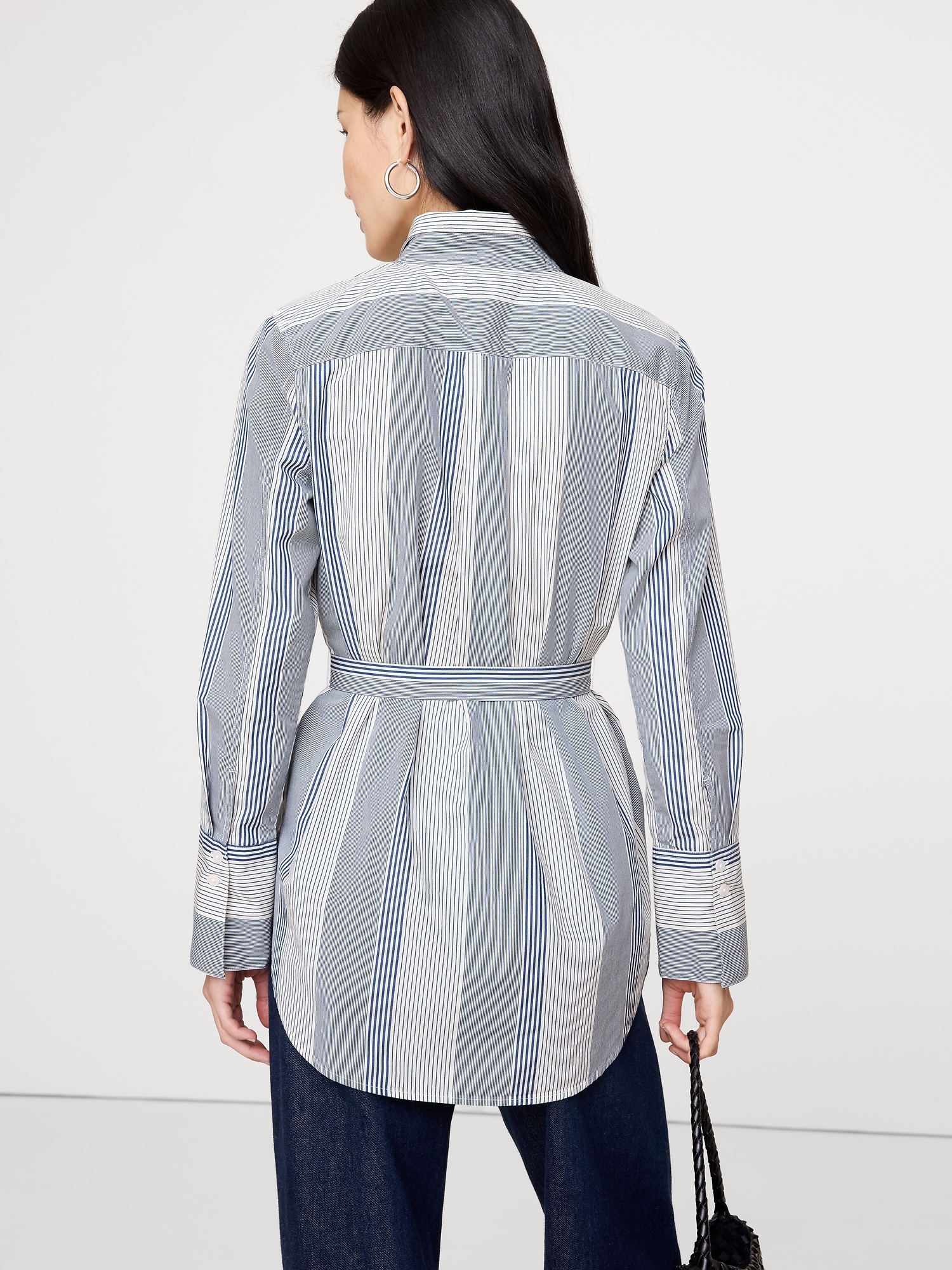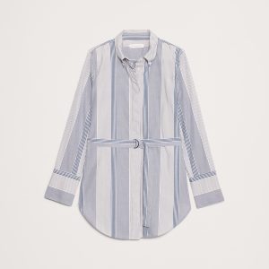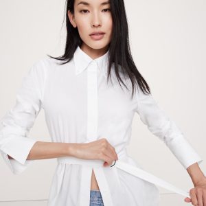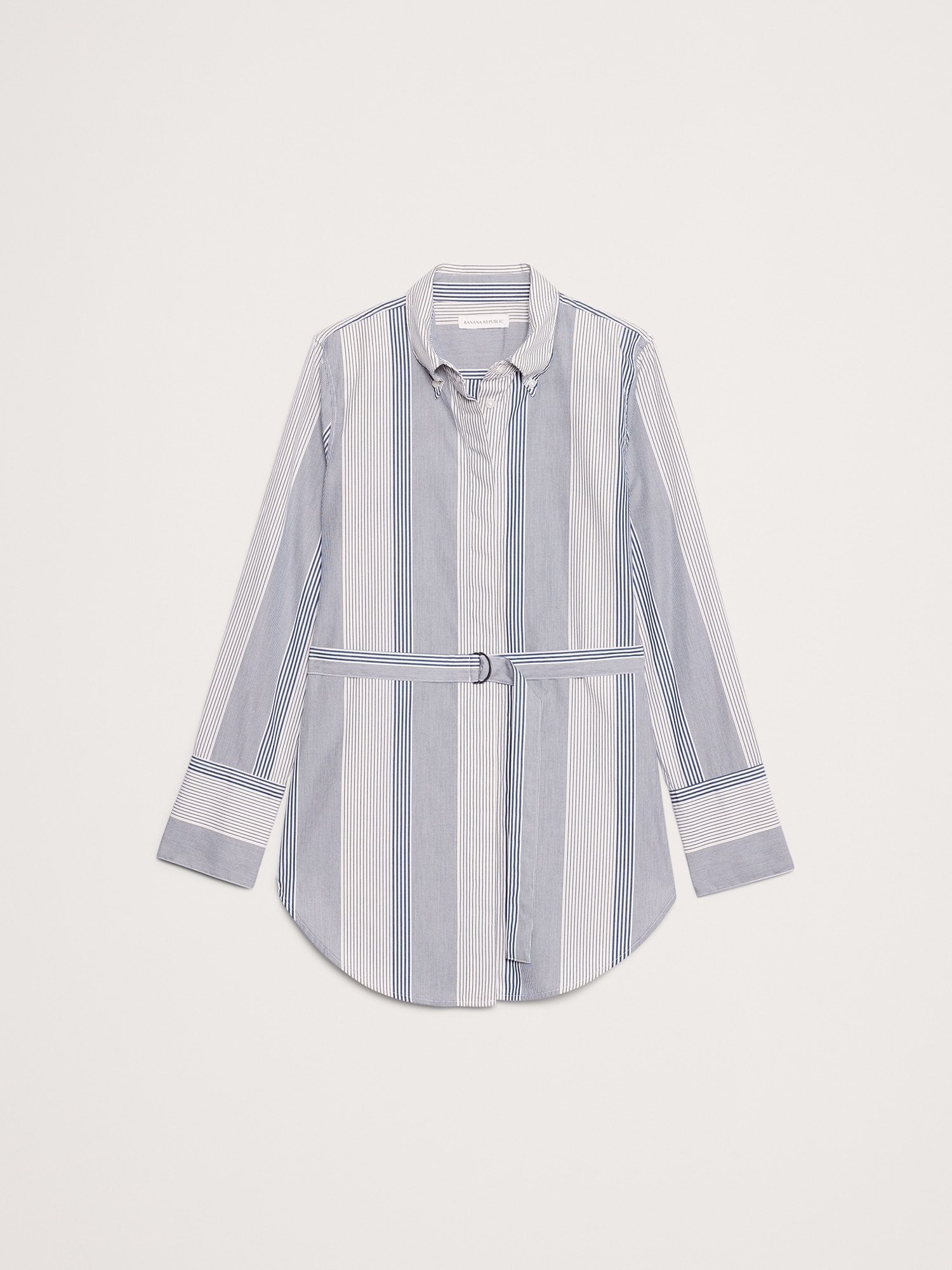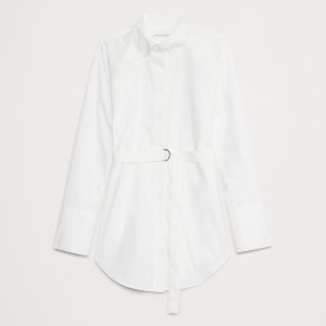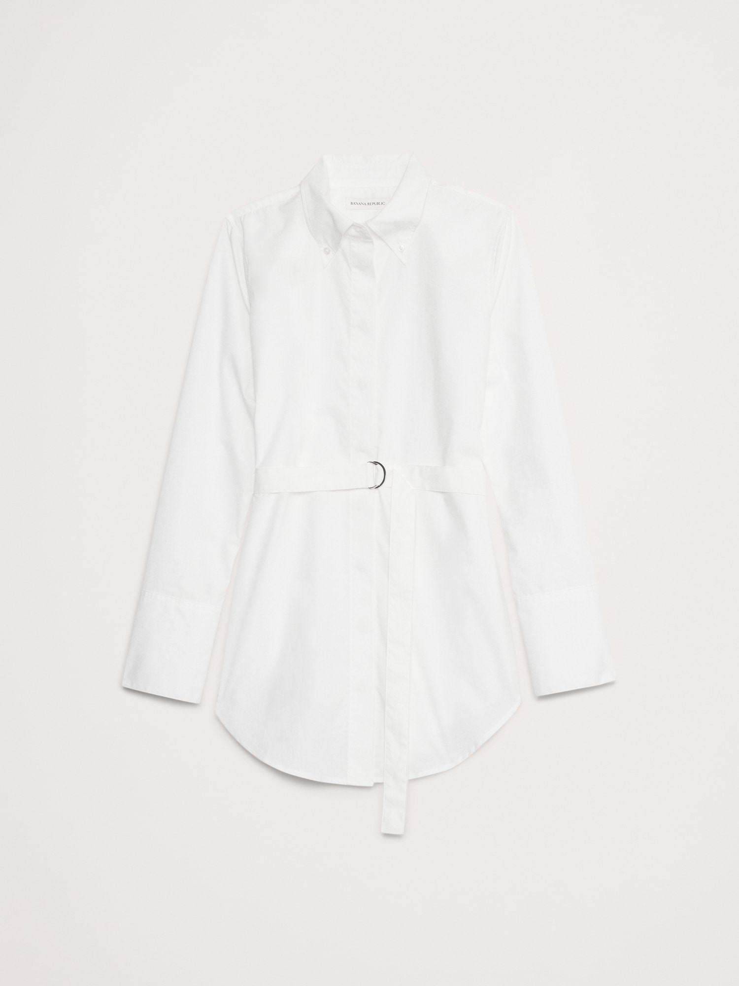 It’s these easy cotton poplin shirts we’re loving right now. This one is tunic length and has an adjustable slider belt to define the waist.