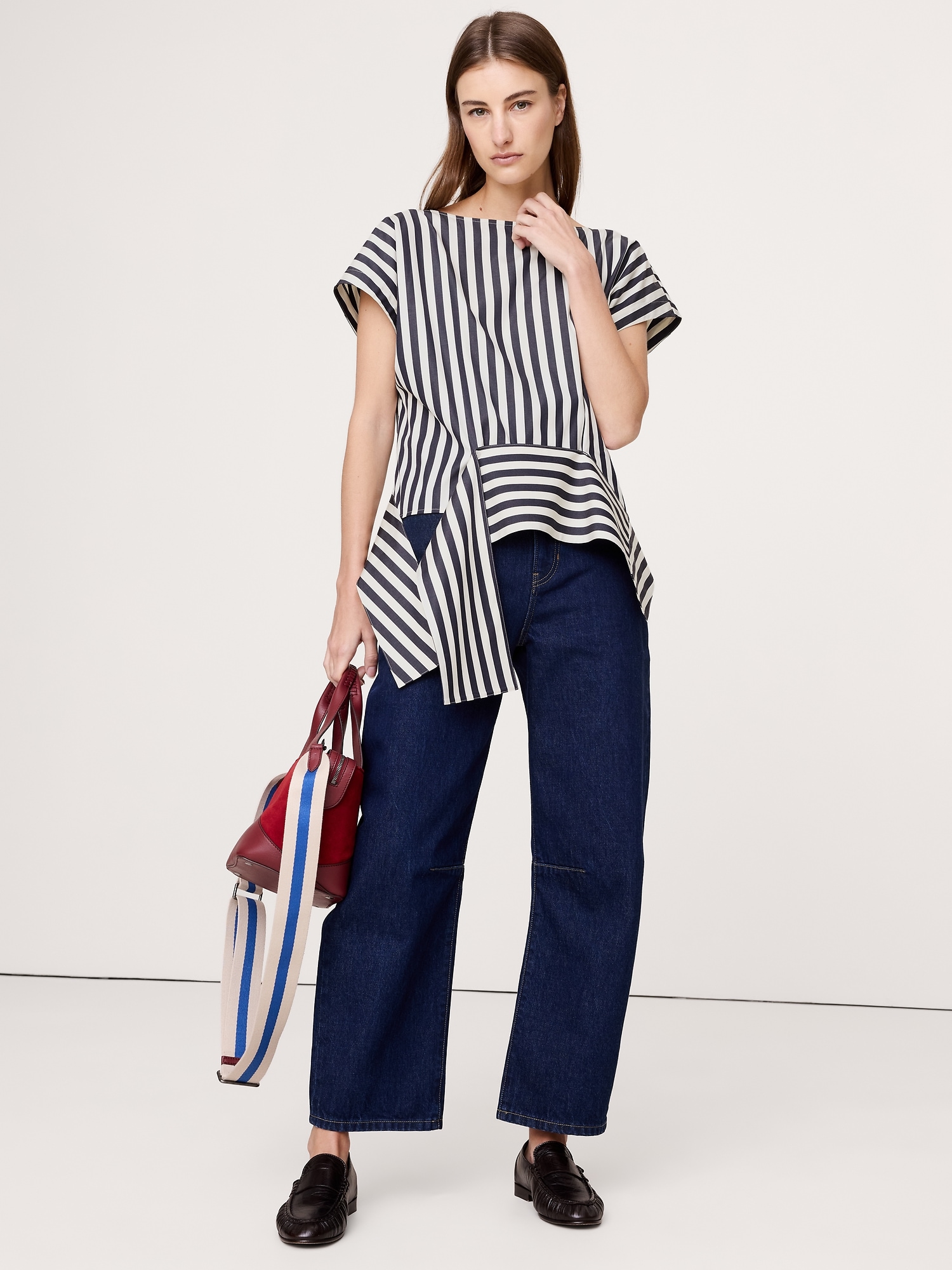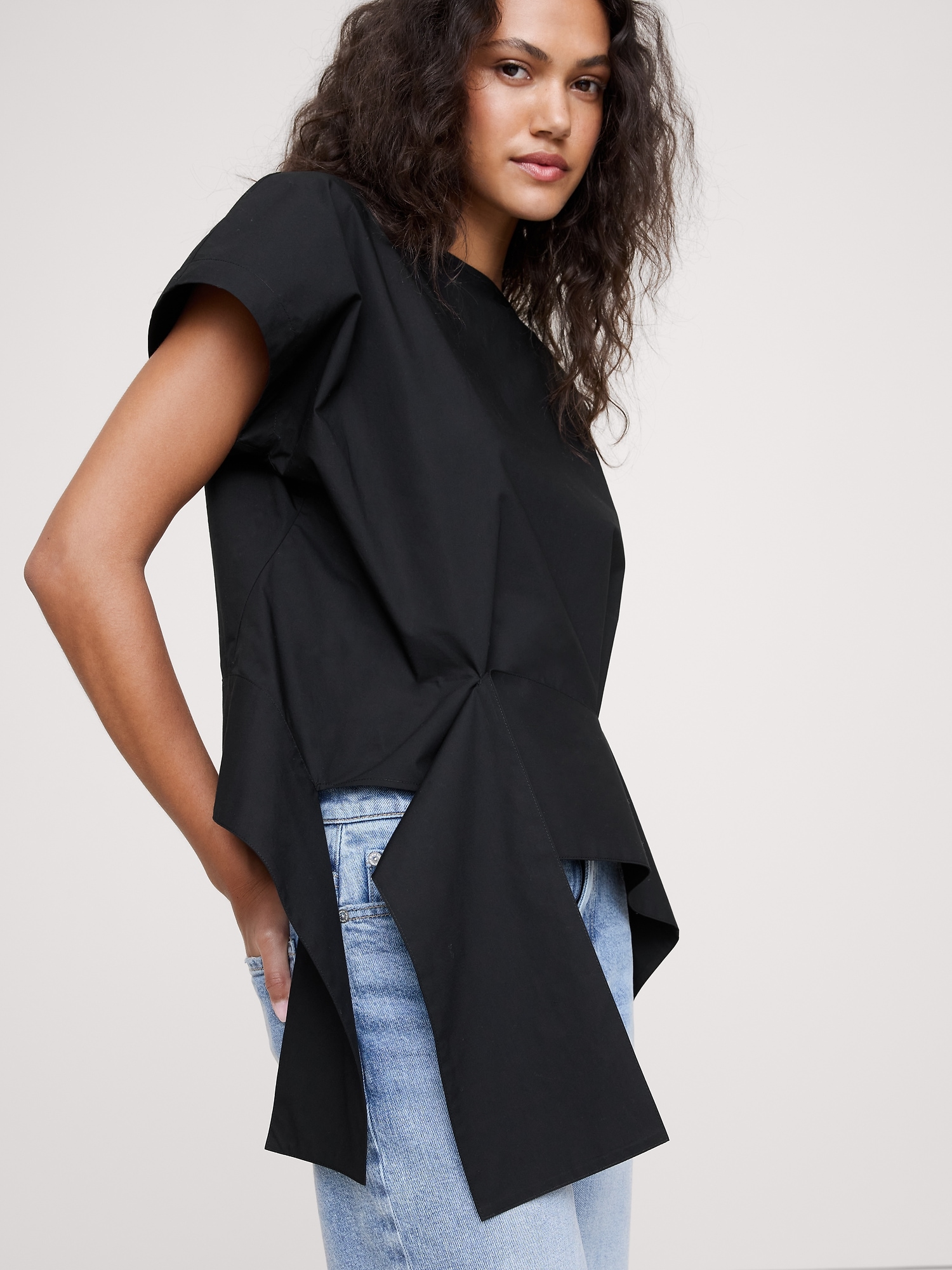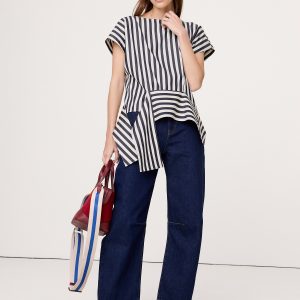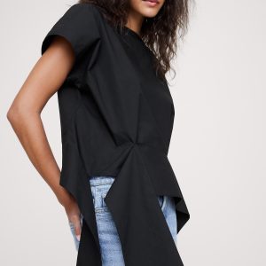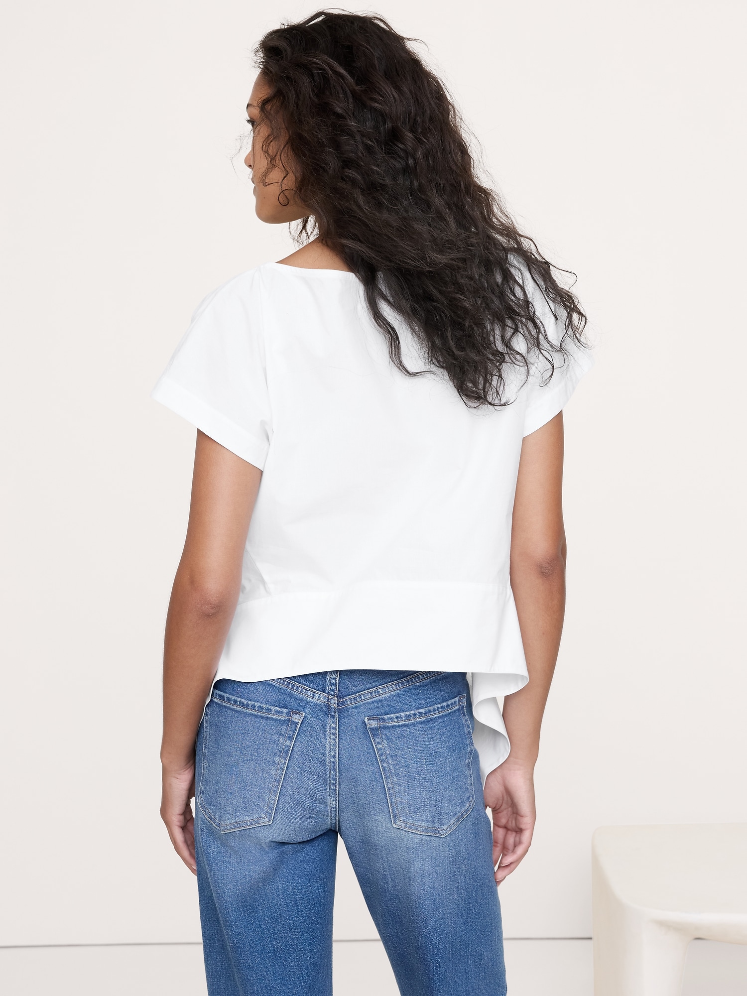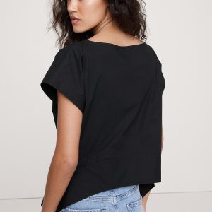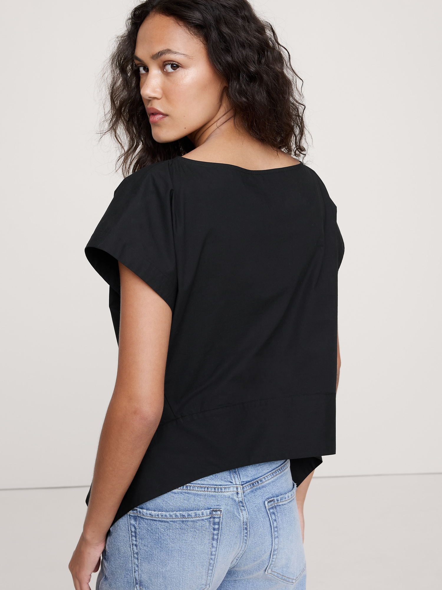 Cotton Poplin Boatneck Asymmetrical Top