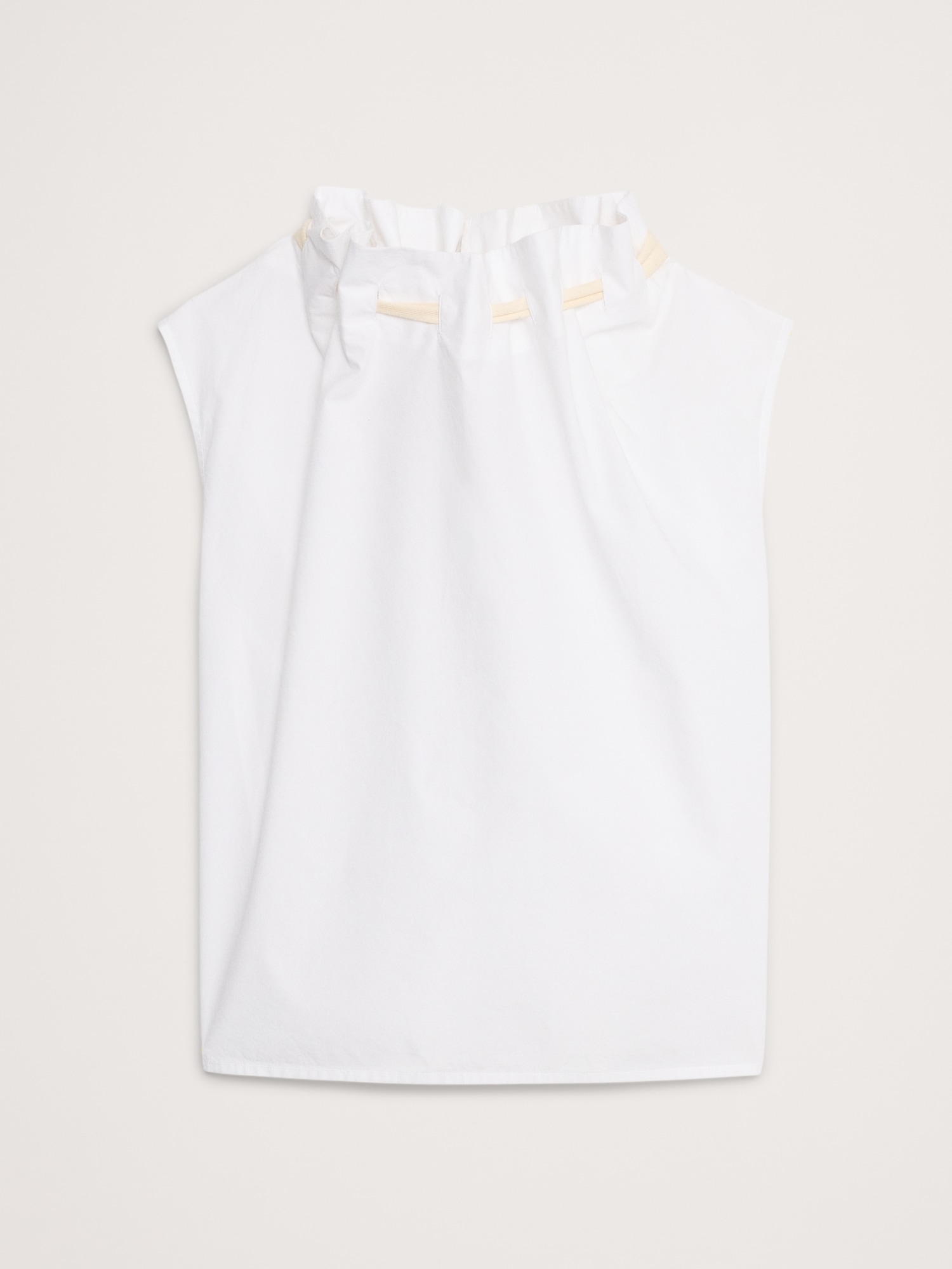 We love poplin because it transcends trends. Here, a cinch-neck top with drawstring detail in premium 100% cotton poplin.