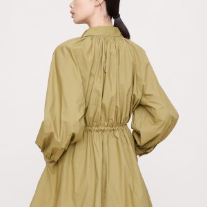 We’re loving cotton poplin right now (and always). This mini dress nods at the season’s volume-sleeve trend, fitted with shirtdress styling and a utilitarian drawstring at the waist.