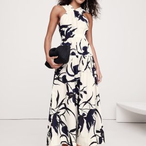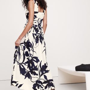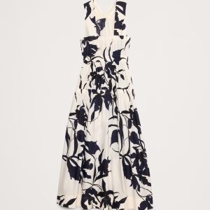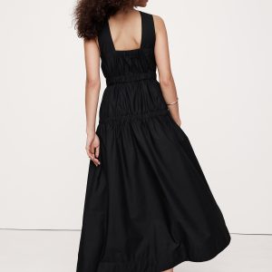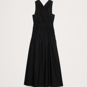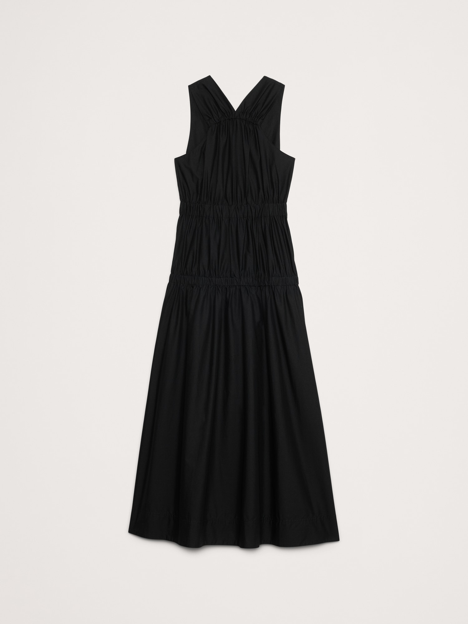 Cotton Poplin Ruched Drop-Waist Maxi Dress