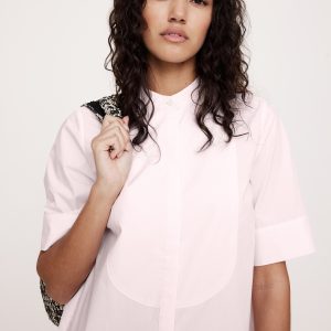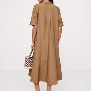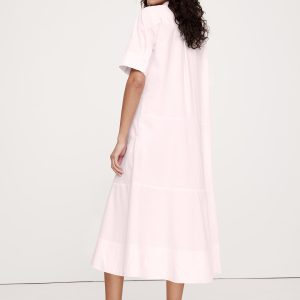 Cotton Poplin Tuxedo-Front Midi Dress