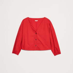 Cotton Poplin Volume-Sleeve Top