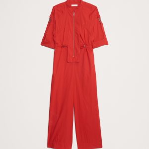 Cotton Poplin Zip Utility Cropped Jumpsuit