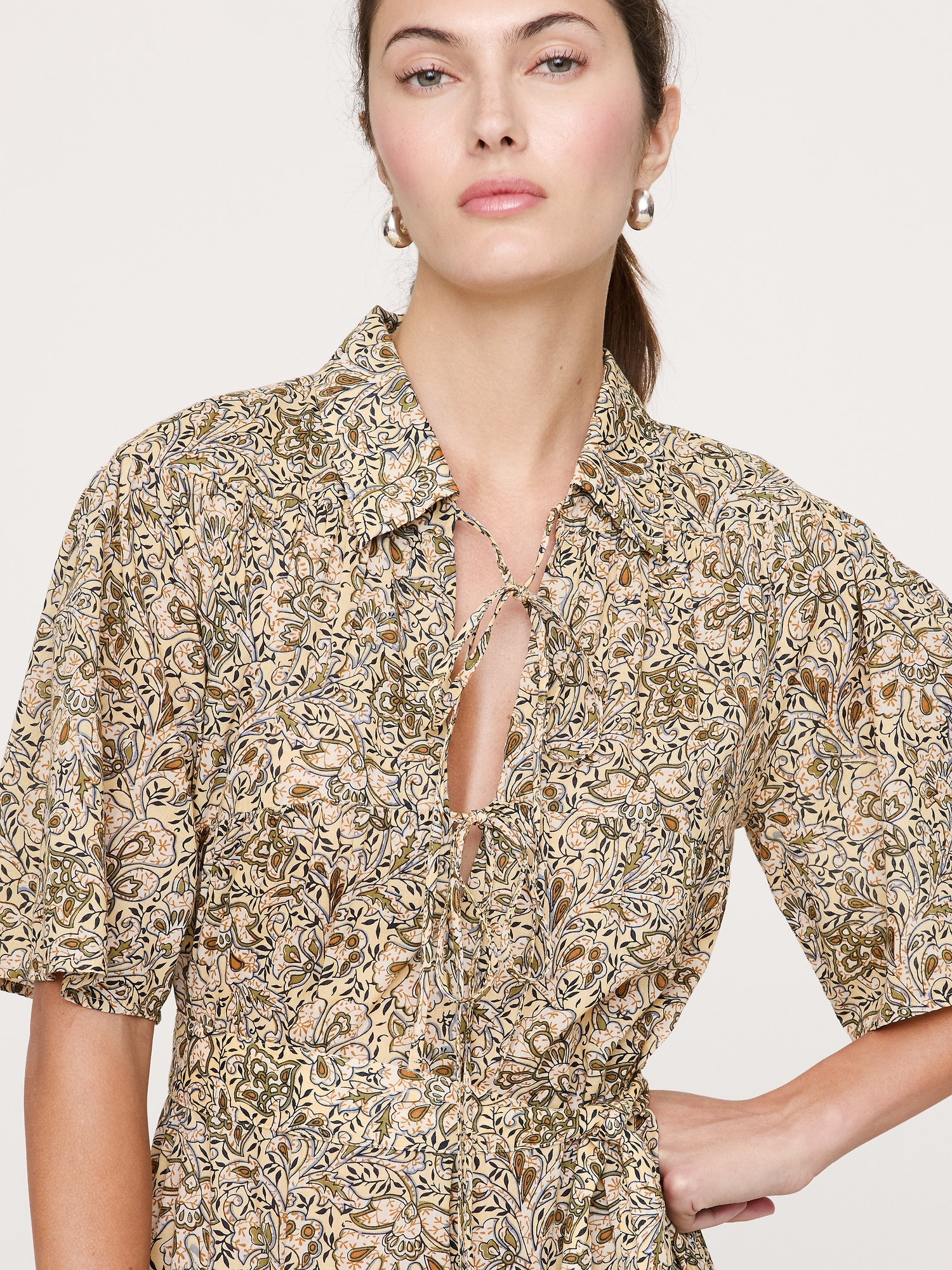 Cotton Tie-Front Shirt Dress