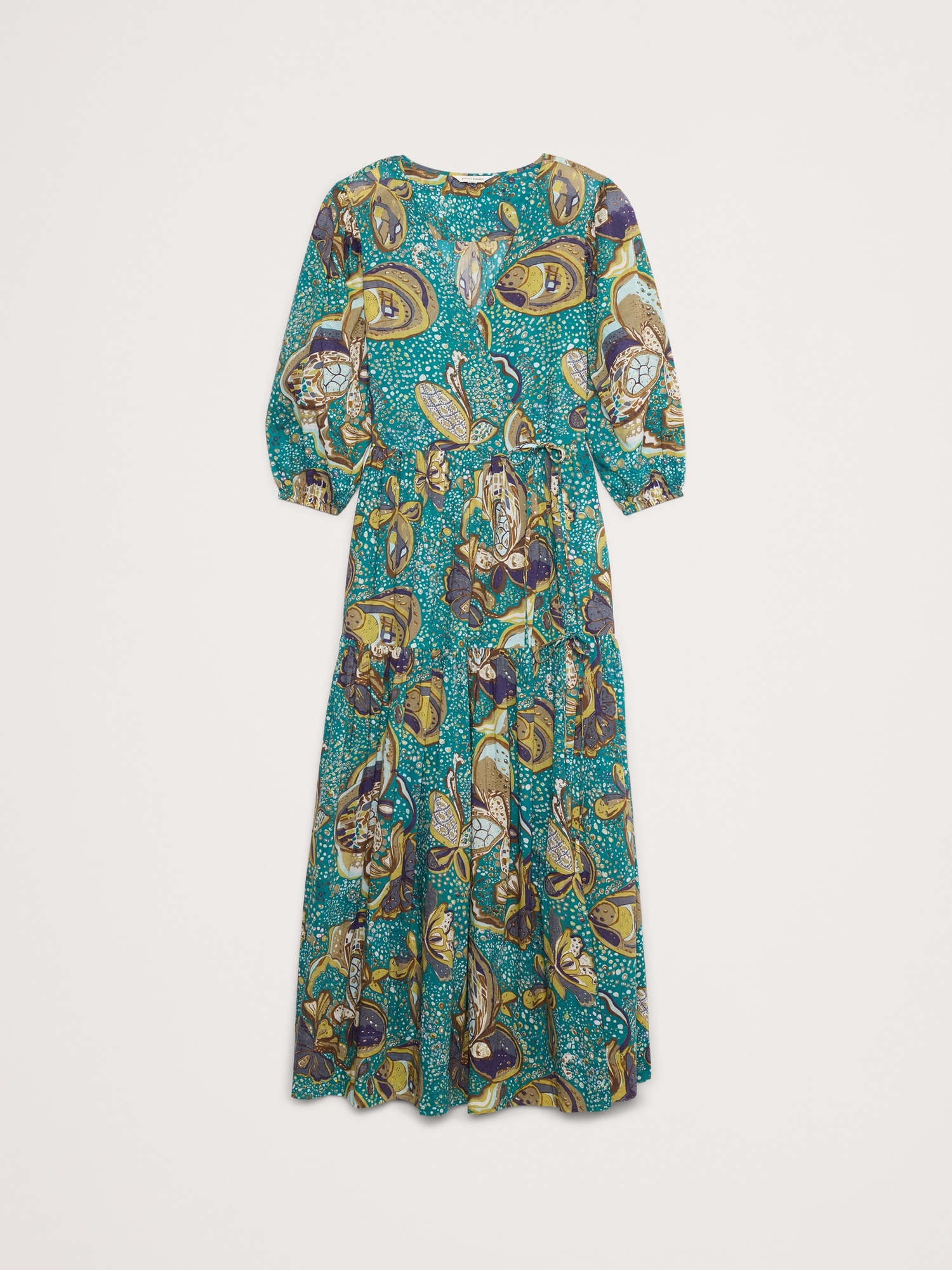 This tiered wrap dress is crafted in lightweight, silky cotton lawn so it’s ideal in hot, humid weather. Dress it up with heels and jewelry, or toss it on over your bathing suit and head to the beach.