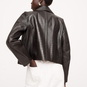 Look closely: this sleek leather jacket is cut from a luxurious leather quality that has been embossed to mimic the look and feel of crocodile. Here, we showcase this beautiful material in a classic, minimalist silhouette with a two-way zip front and point collar to give this style the retro, utilitarian vibe of a garage jacket.