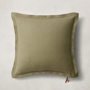 Luxe linen, garment-dyed for dimensional color. Expertly woven of fine linen, our pillow cover is specially dip-dyed for refined tonal beauty and accented with flanged details and a leather pull. Exposed zip closure and leather pull. Made in India. Pillow inserts are sold separately and are sized slightly larger than our pillow covers to create a fuller effect. #618696