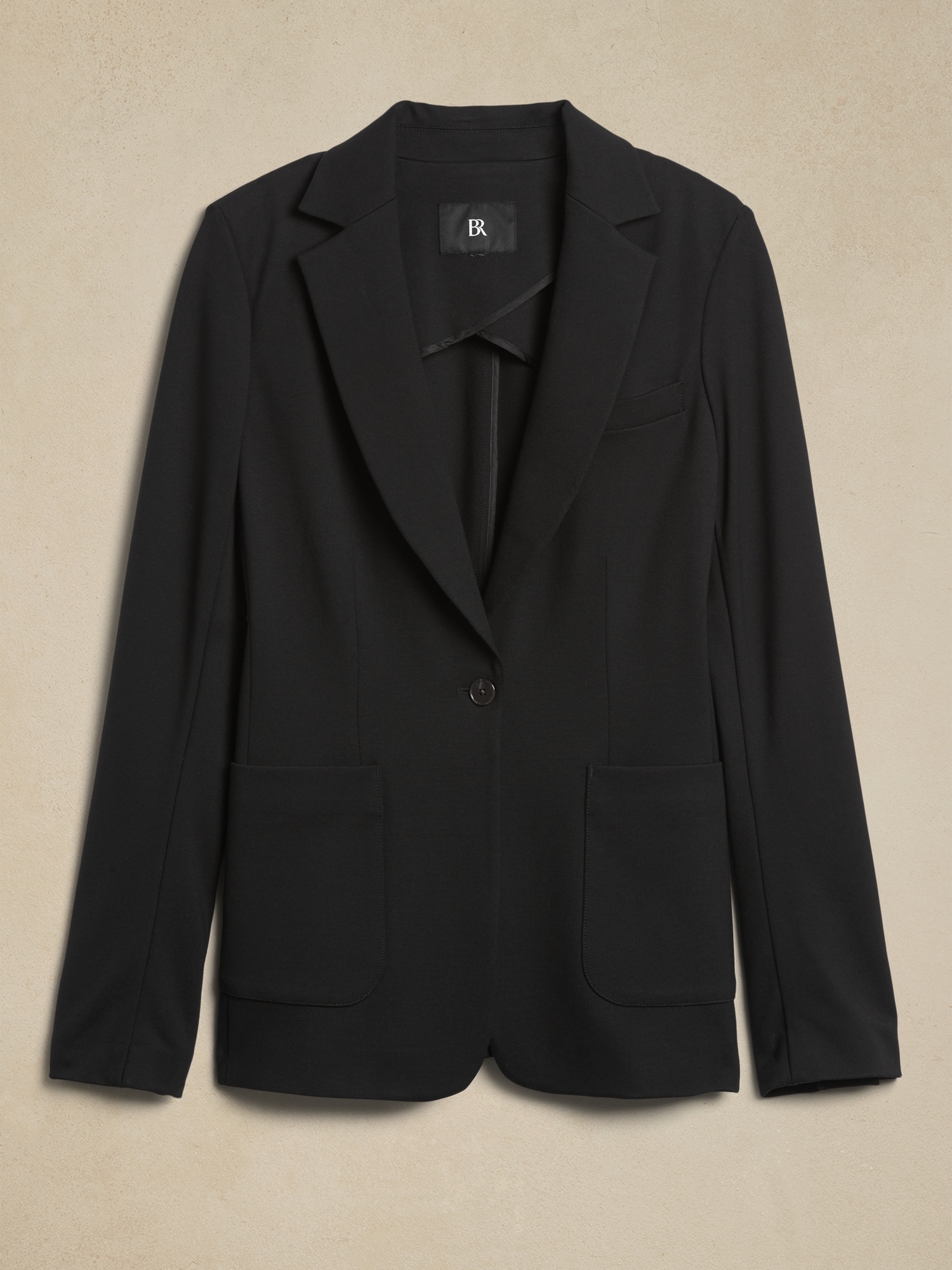 This at-ease blazer is made from our Everywhere Ponte fabric—a favorite for its dressed-up look and high stretch for comfort.. We added small shoulder pads for a tailored silhouette, but kept the blazer unlined to make the most of this beautiful stretch fabric.