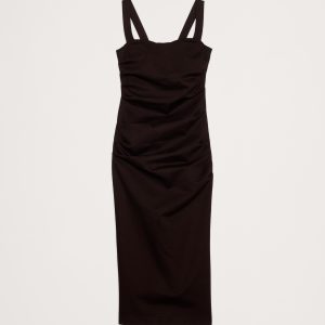 This ruched midi dress uses our Everywhere Ponte fabric—a favorite for its dressed-up look and high stretch for comfort. Here, we chose a fitted silhouette and a sweetheart neckline.