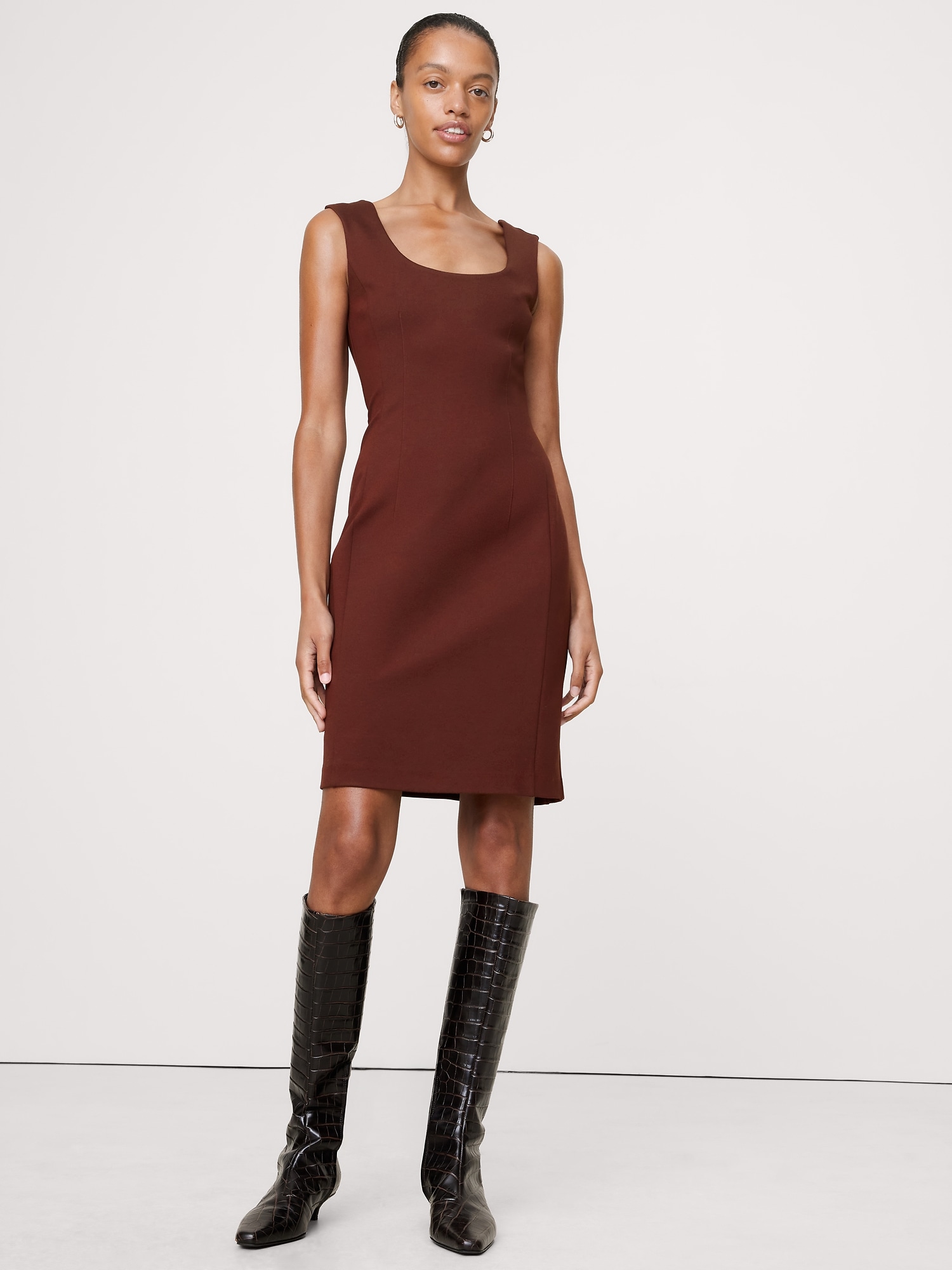 An all-around standout, this tailored dress has darts at the waist and a wide, scoop neck and back. Crafted in our Everywhere Ponte fabric—a favorite for its dressed-up look and high stretch.