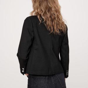 We cut this blazer in shrunken proportions using our Everywhere Ponte fabric—a favorite for its dressed-up look and high stretch for comfort. We added bracelet-length sleeves and small shoulder pads for a tailored silhouette, but opted for a butterfly lining at back.