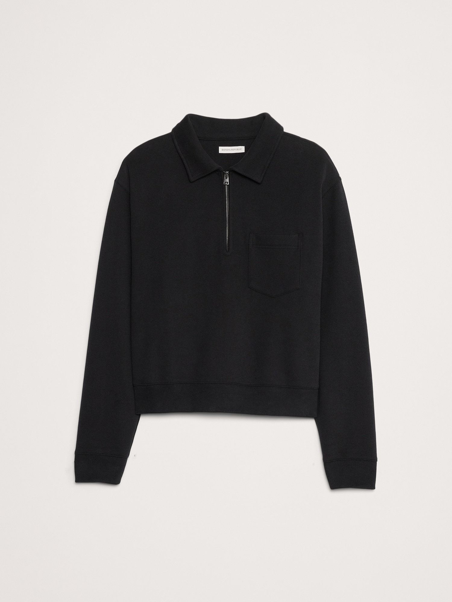 Team Cozy. We reached for one of our softest sweatshirt fleeces here, opting for a boxy, relaxed fit and zip-placket polo collar for a vintage vibe.