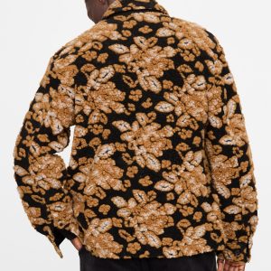 A very cool chore coat, we cut this one in a fleecy fabric with a textured, floral jacquard pattern that almost resembles sherpa.