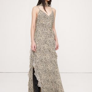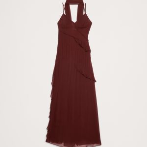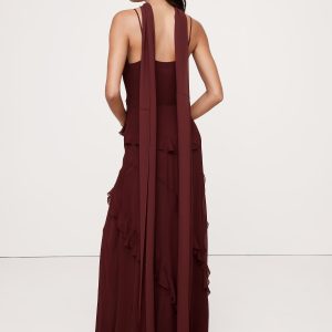 Going somewhere? Wear this. We cut this ruffled maxi dress from a soft, light-as-chiffon georgette, opting for a wraparound construction technique to show off your shape. Plus, it comes with a long, skinny scarf to toss across your shoulders, wrap around your neck, or tie in your hair.