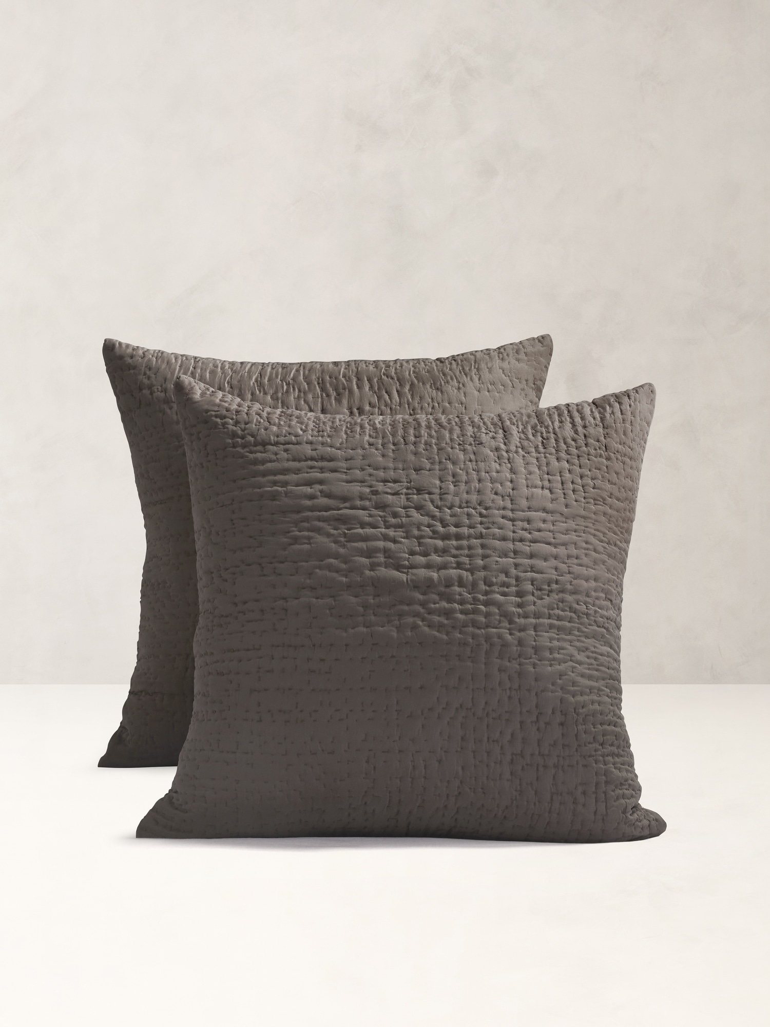 Masterfully crafted from silk, soft shams are expertly spun and then stitched by hand with an abstract pattern for subtle dimension.