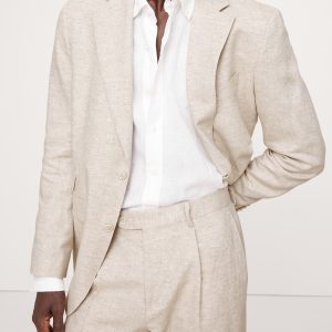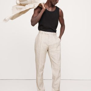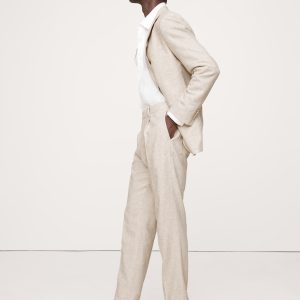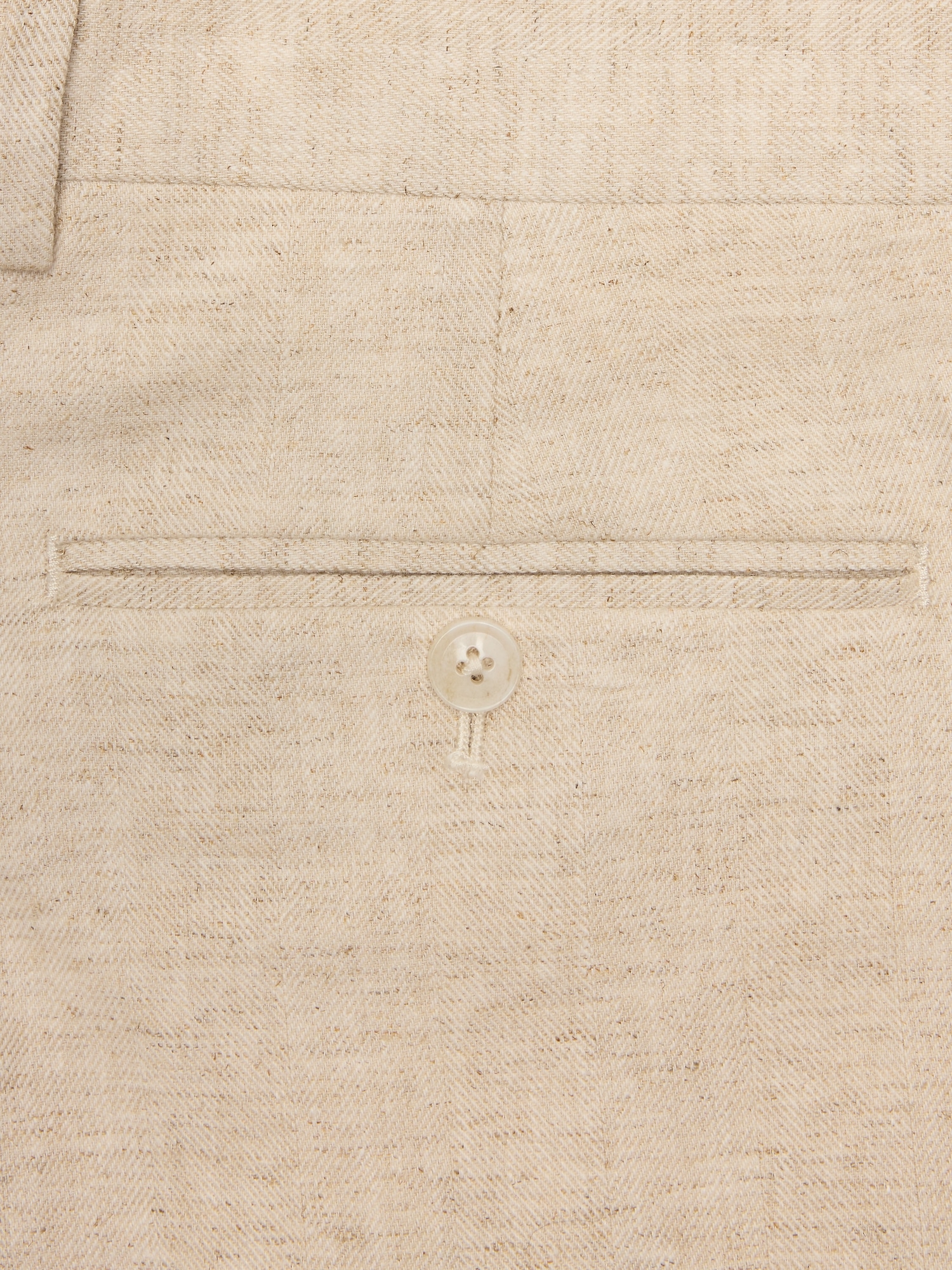 Designed with warm climates in mind, this sleek suit pant is cut from an herringbone fabric that blends together soft cotton and luxurious linen.