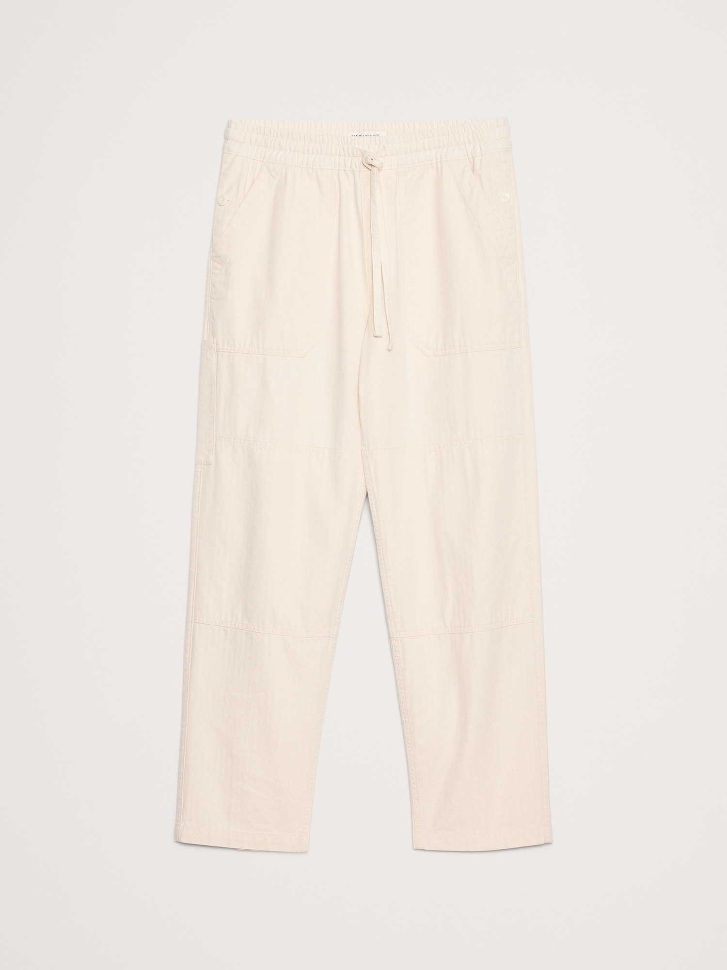 Inspired by a vintage pair of utility gardener’s pants, we borrowed the pockets and reinforced knee panels of the original, rendering them in an all-season cotton fabric with a herringbone weave. Plus, we went for an elastic waistband so they’re super comfy.