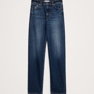 A nod to the 90s. These straight-leg jeans have a high-rise and stovepipe-straight fit through the leg. Our designers selected a soft denim with stretch for comfort.