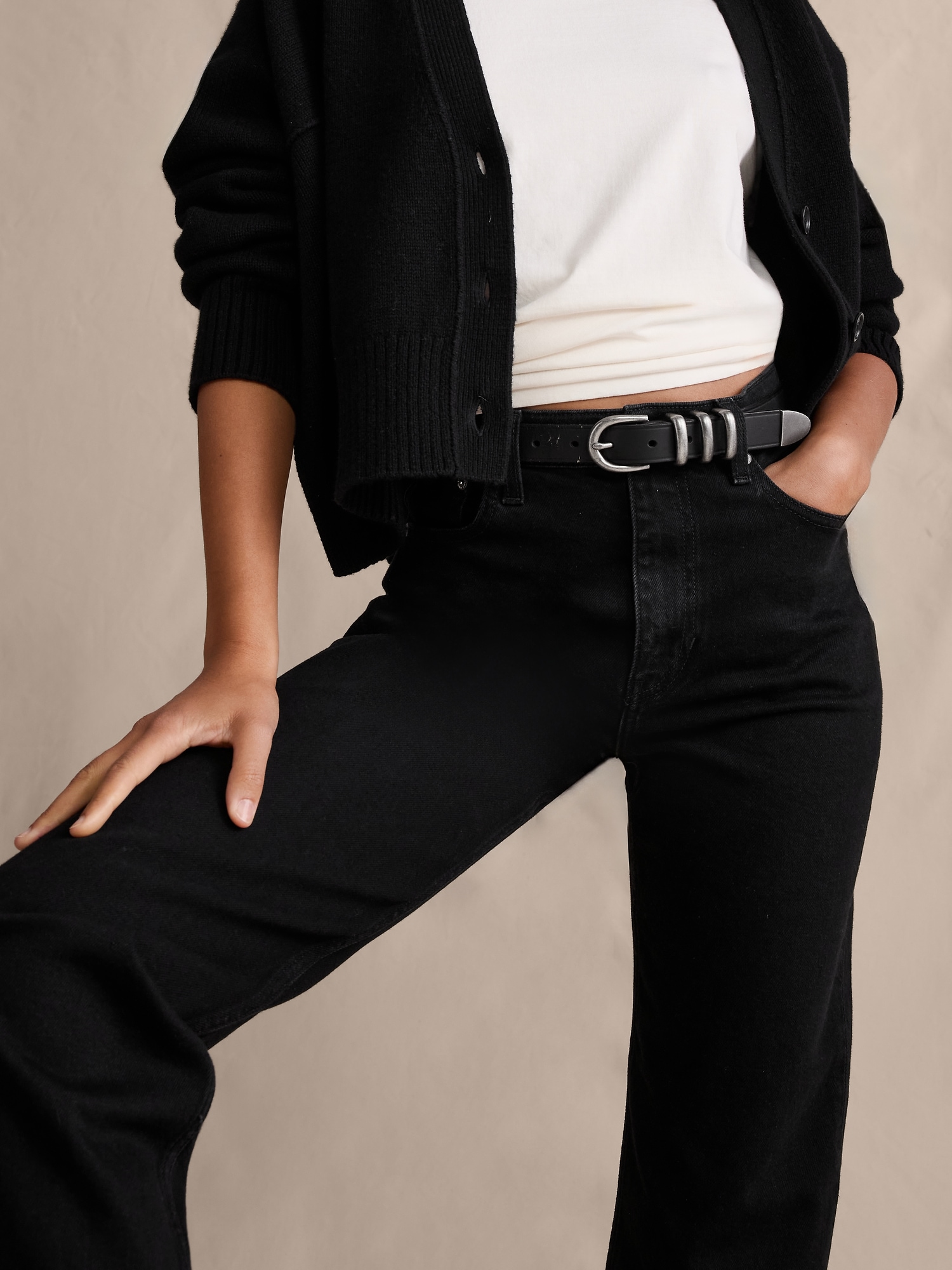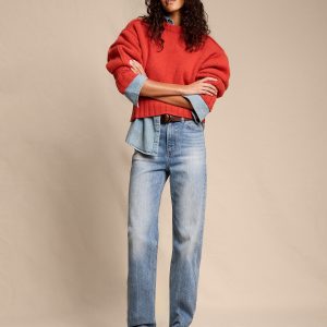 A nod to the 90s. These straight-leg jeans have a high-rise and stovepipe-straight fit through the leg. Our designers selected a soft denim with stretch for comfort.