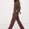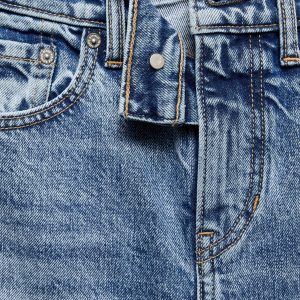 Zip fly with button closure. Belt loops.