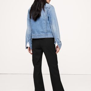High Rise Modern Straight: High rise (12\”) with a relaxed fit through the thighs and a straight leg. Full length.