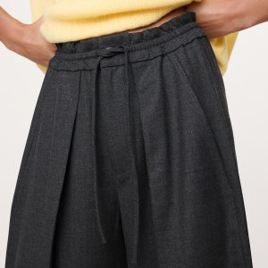 Our take on the season’s barrel-leg pants, cut in an wool-blend flannel we love for its smooth look and high stretch. Plus, we opted for a drawstring waistband, pleated front, and pull-on design.