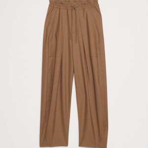 High-Rise Pleated Barrel Flannel Pull-On Pant