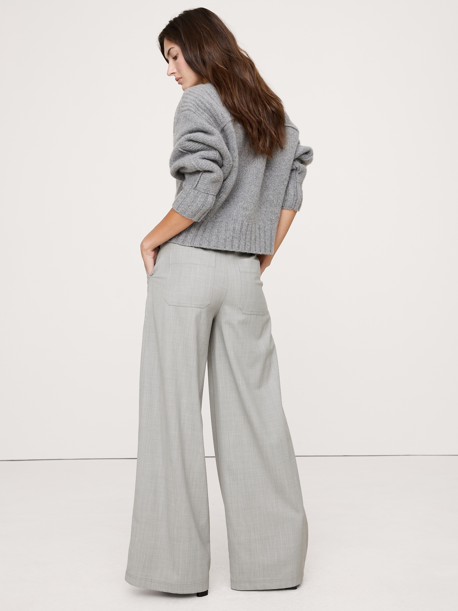 A very cool pair of pants. We kept the fit high-and-wide, with a drawstring at the waistband and patch pockets at back for a utility feel. To make them luxe, we reached for our best-selling Italian wool.