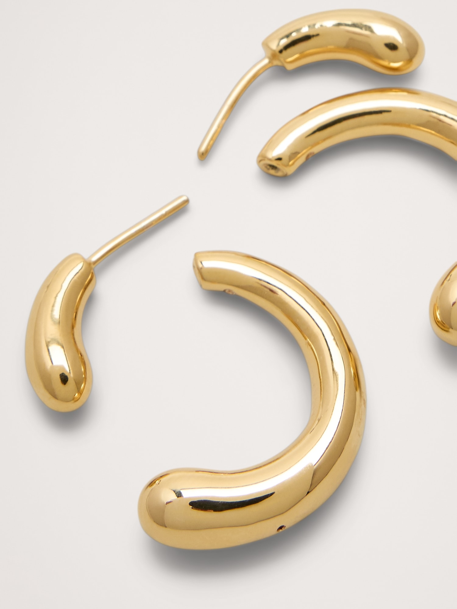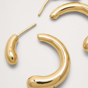 Classic hoop earrings reimagined in a an organic shape so they can be worn facing forward or back. Finished in either 14k-gold or 999-silver plated brass.
