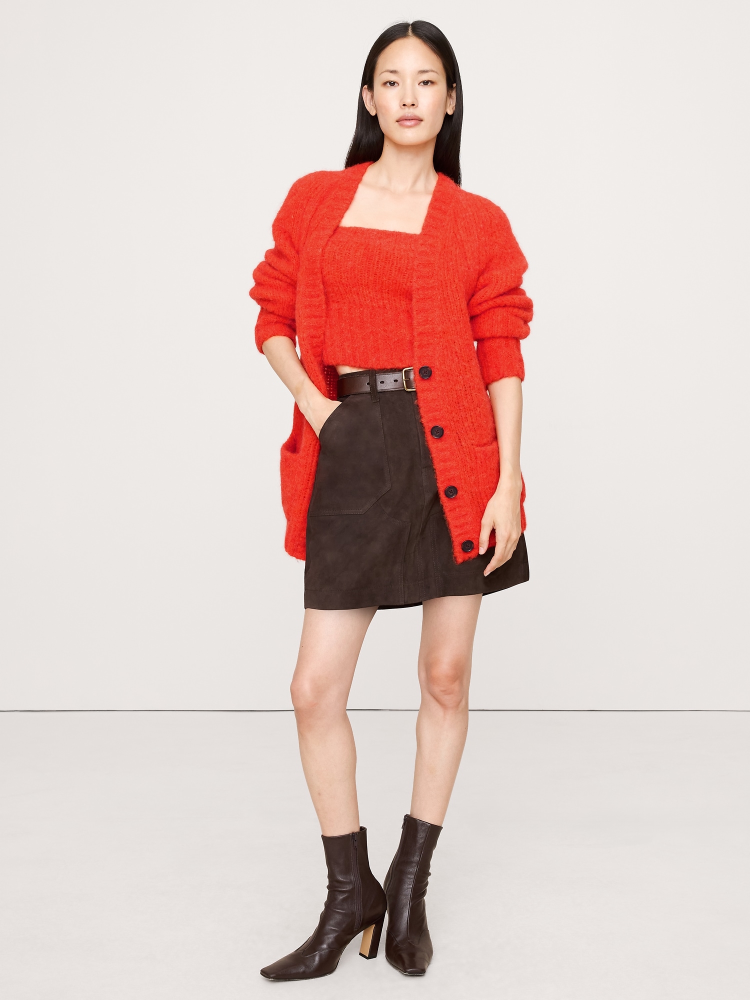 Style it with the matching cardigan or wear it on its own, this strapless top is knit from a soft and fuzzy alpaca blend from our friends at Italy’s Pinori Filati mill.