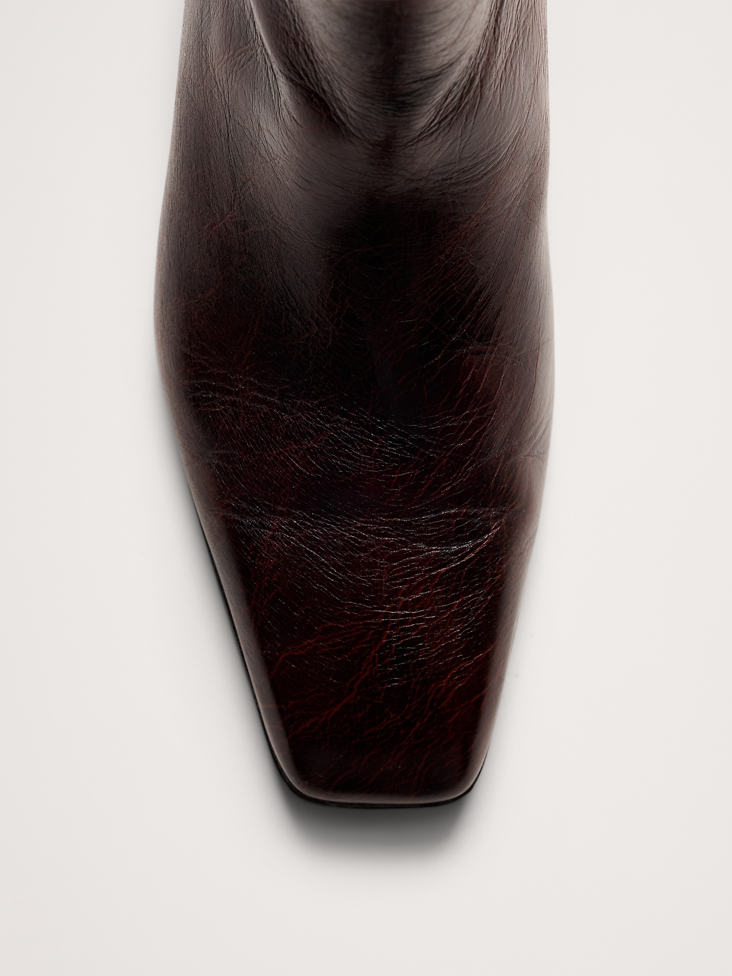 Our sleek take on the season’s ankle boot silhouette, we opted here for a squared-toe and minimalist styling—the better to show off the beautiful Italian leather. Plus, we kept the heel height modest for everyday comfort.