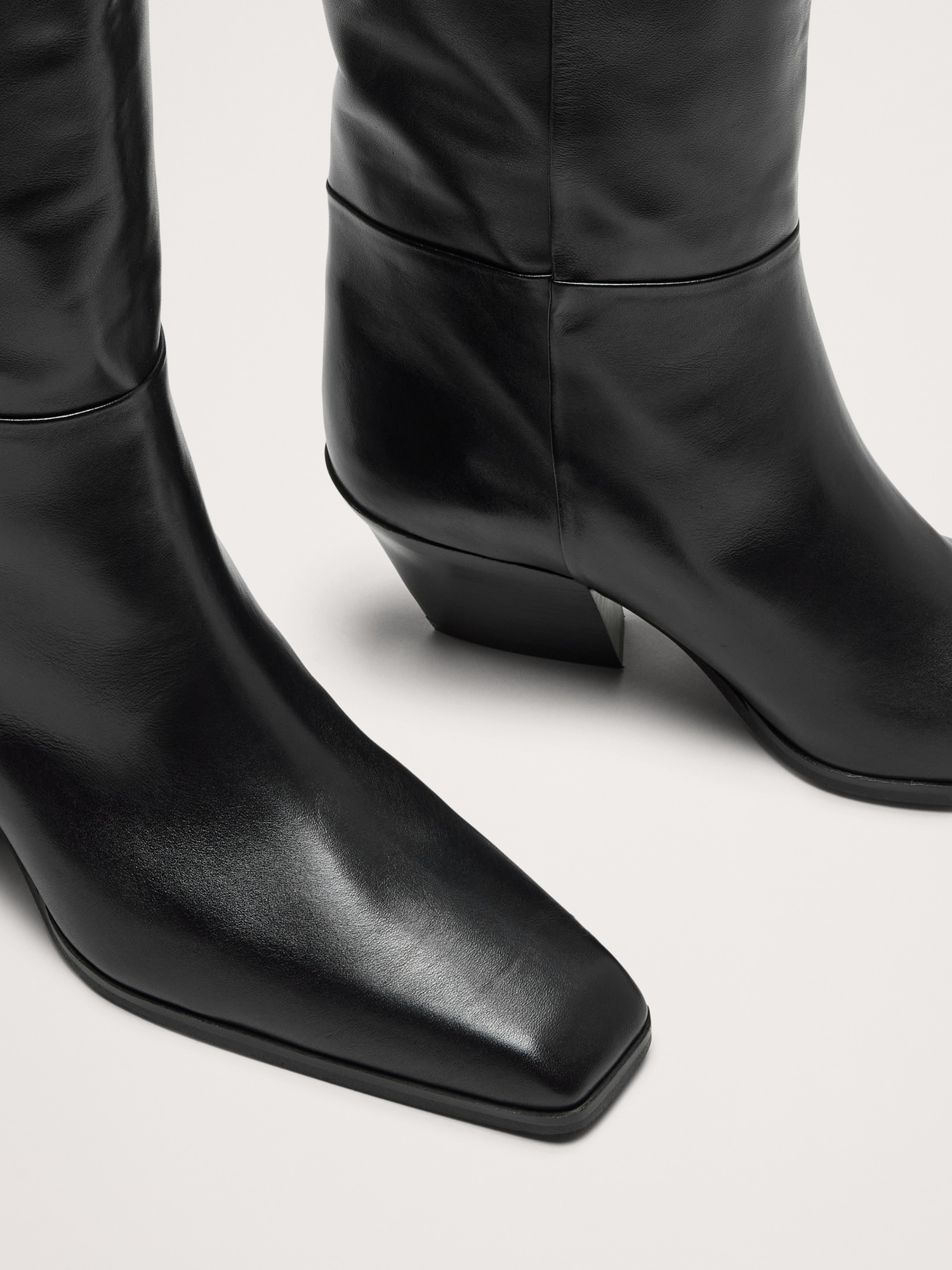 Our take on the season’s Western boot silhouettes, we opted here for a squared-toe and minimalist styling—the better to show off your choice of beautiful Italian leather or suede.
