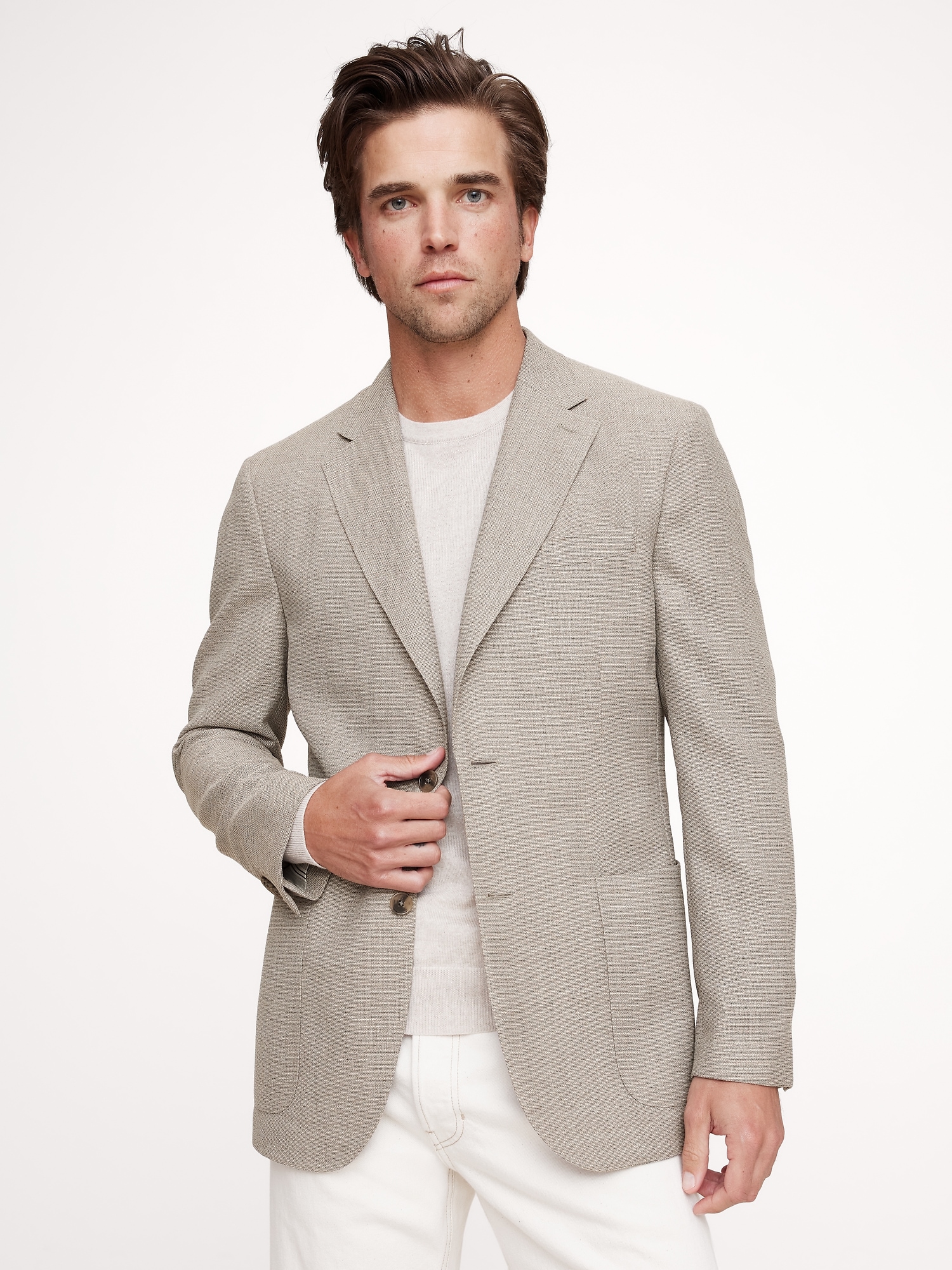Imagine a wool suit for summer: packs easily, looks great, stays cool even in heat and humidity. Enter, this suit jacket, cut from a vintage-inspired wool ventile, produced by one of the most renowned mills in Italy. Hello, wedding season. Wrinkle-ResistantSlim Fit: Slim through the chest and waist, with an Italian-style soft shoulder. Slim sleeves.