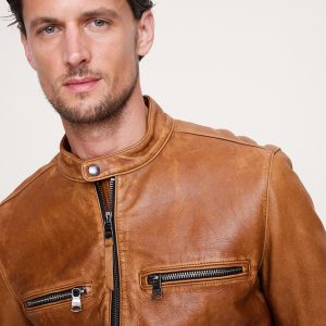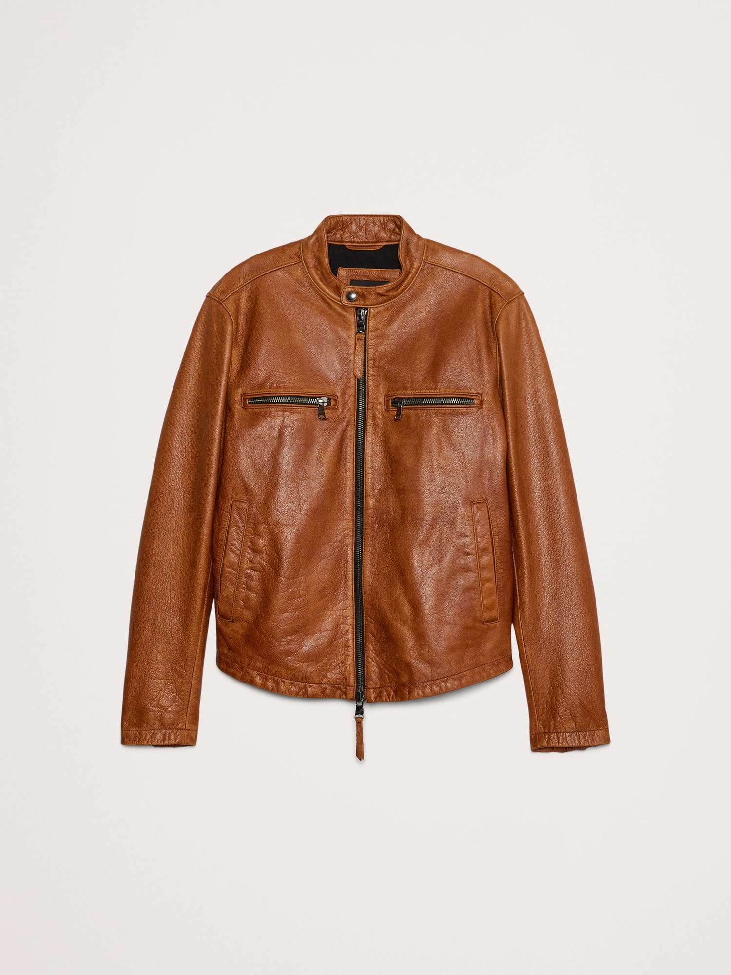 Crafted from supple leather with a silky soft interior lining, this classic moto jacket is finished with all of the traditional features you’d want in a moto jacket, like a banded collar over the neck and grommets under the arms to prevent overheating.